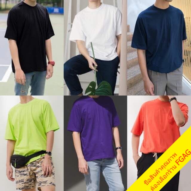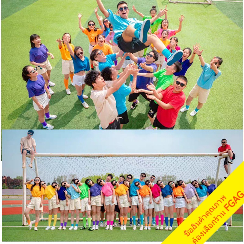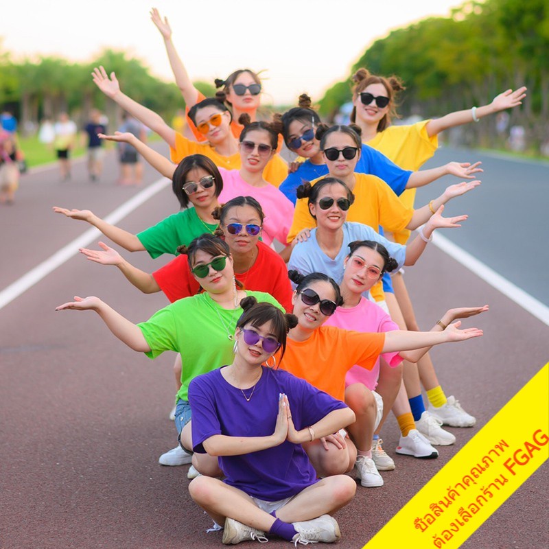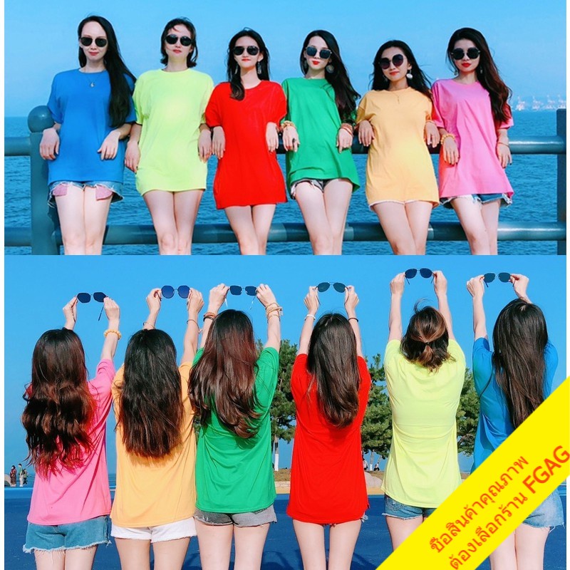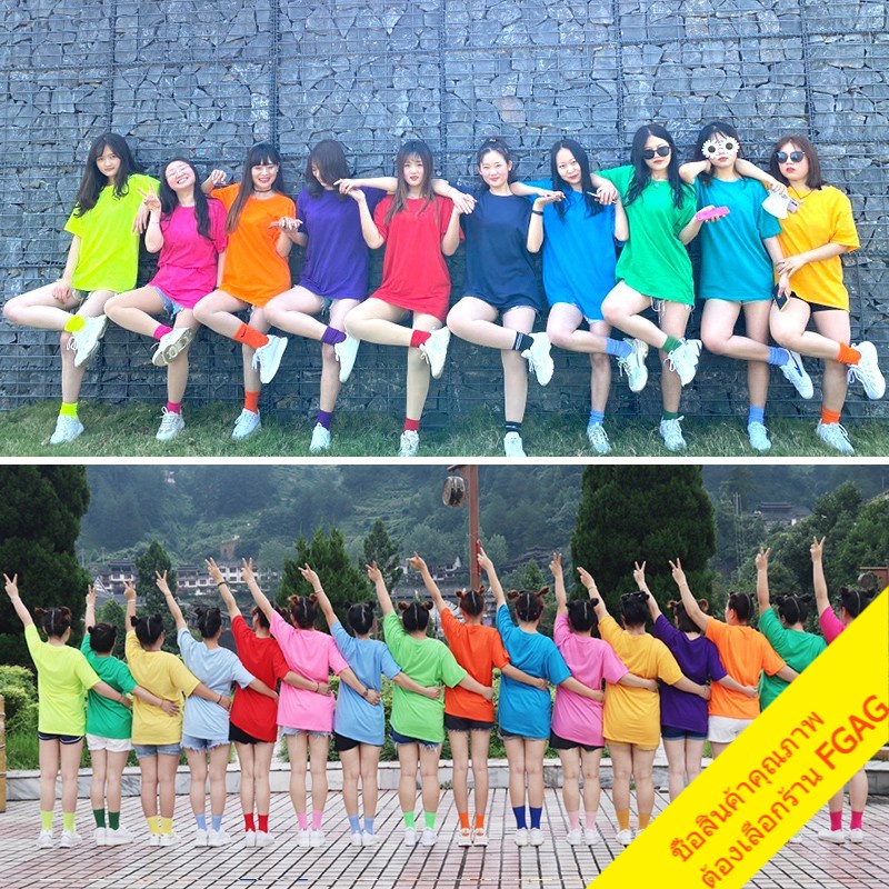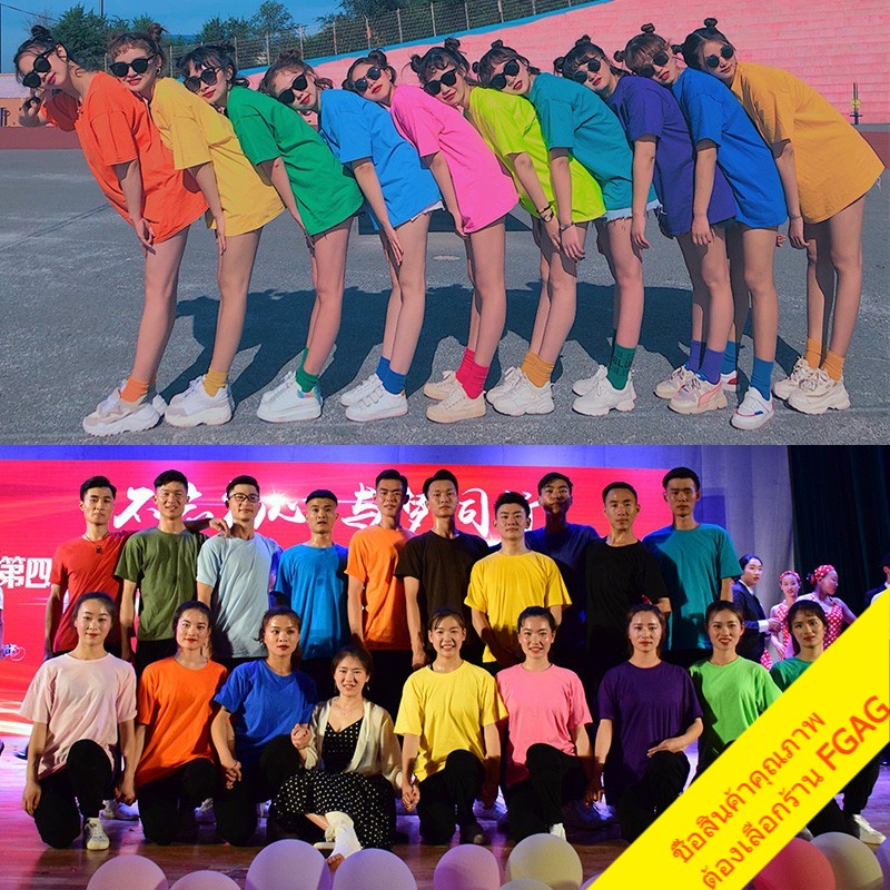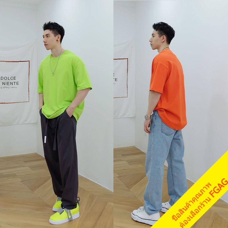 เสื้อยืดคอกลมแขนสั้นผู้ชาย Oversize เสื้อผ้าวัยรุ่นแฟชั่นผู้หญิง เสื้อคู่รักทีมเพื่อน โอเวอร์ไซส์ เกาหลี สีพื้น สีเหลือง