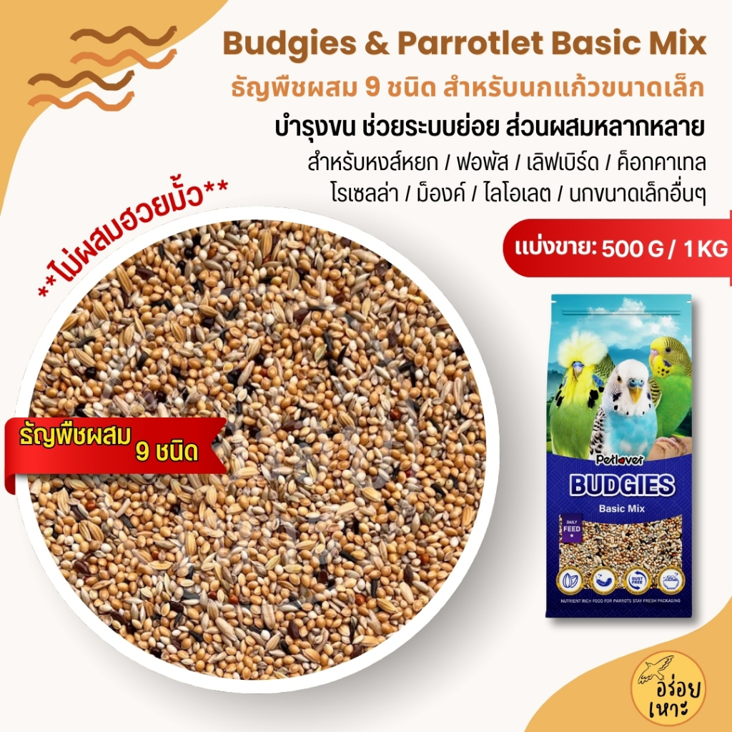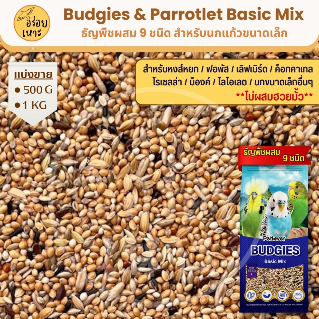 อาหารนกหงส์หยก (แบ่งขาย 1 กิโลกรัม) โลละ 45 บาท อาหารนกหงส์หยก แบ่งขาย