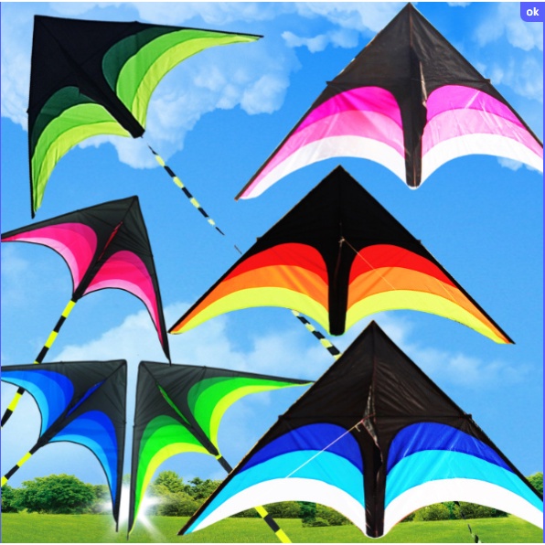 (พร้อมส่ง) ว่าว ว่าวสามเหลี่ยม ว่าวสายรุ้ง สีสดใส ขนาด 160 ซม. ฟรี!เชือก50เมตร