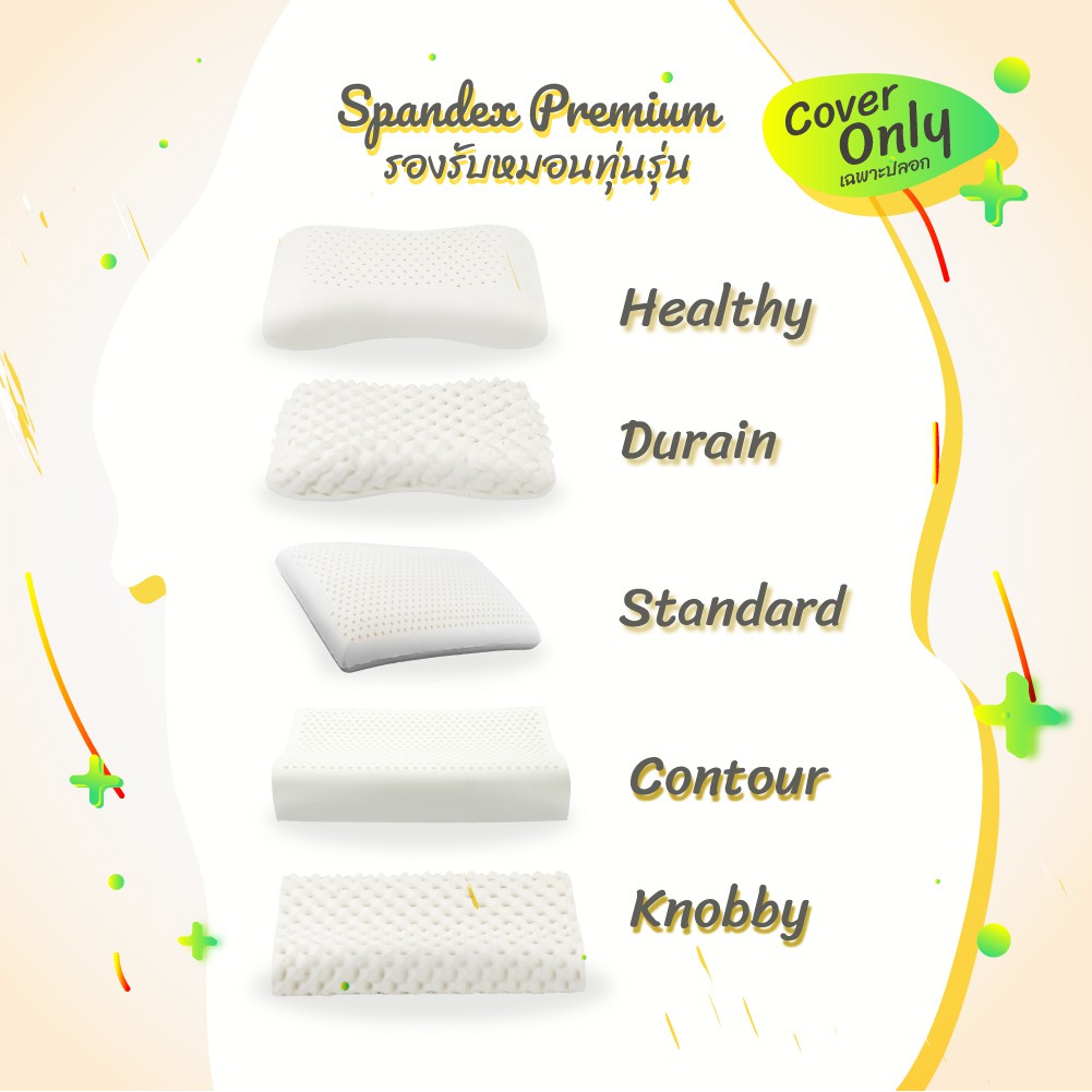 ปลอกหมอนผ้าสแปนเด็กซ์พรีเมี่ยม (Spandex Premium cover) ไม่อับชื้นระบายอากาศได้ดี ทนทานต่อแรงดึงได้สูง น้ำหนักเบา