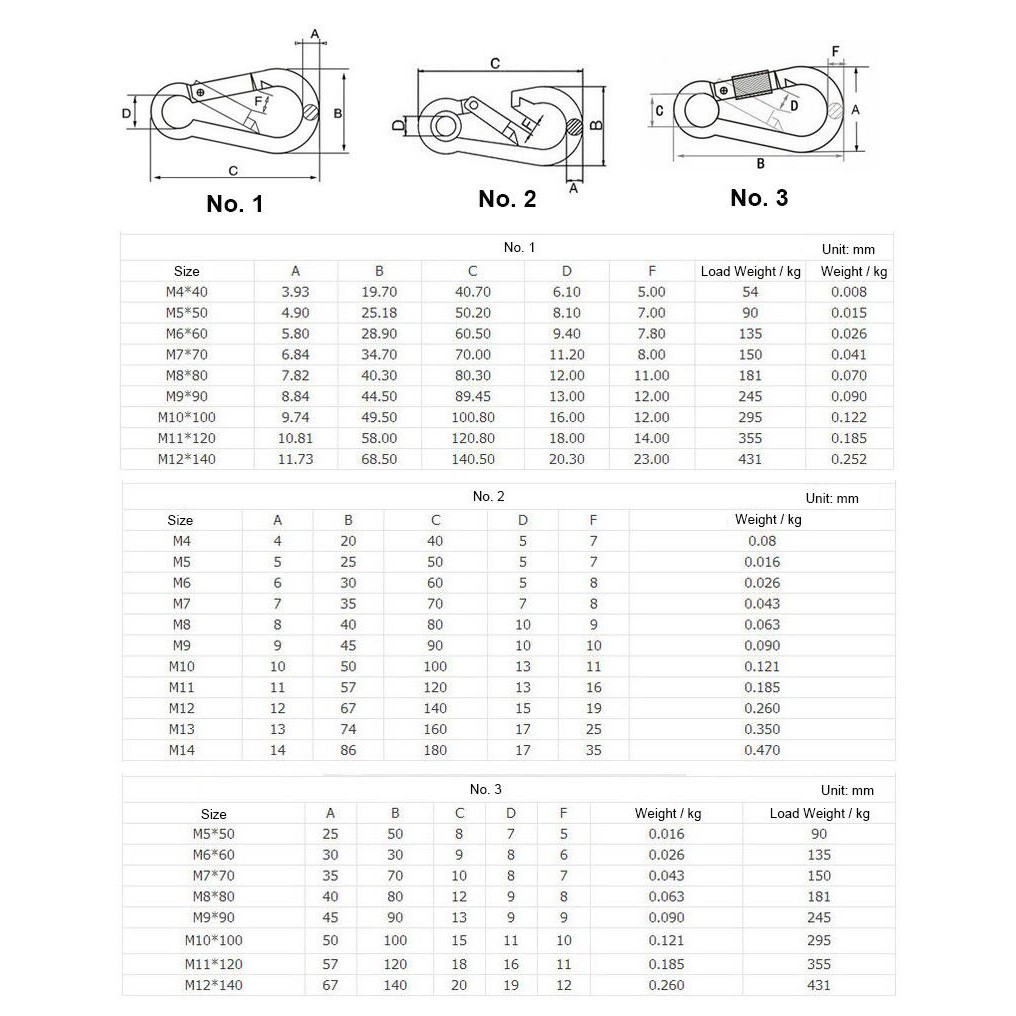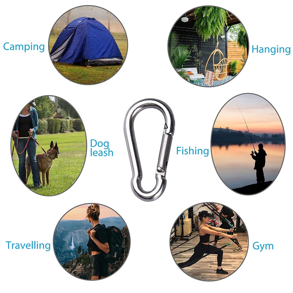 คาราบิเนอร์ #ชุดห่วงเกี่ยวนิรภัย# สแตนเลส 304 ขนาด 8มม.จำนวน 2 ชิ้น 2x#Carabiner Snap Hook with Hooks Assorted Size 8mm.