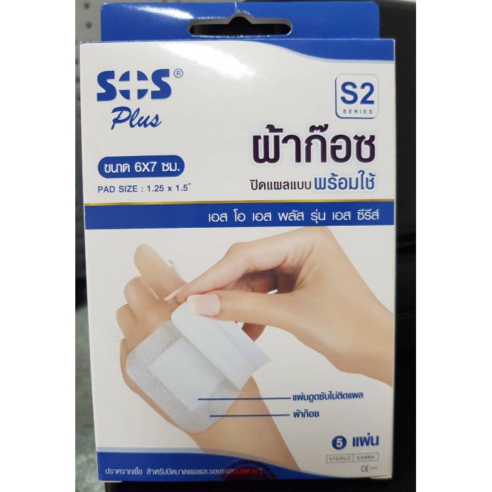 SOS Plus S2 ผ้าก๊อซปิดแผลแบบพร้อมใช้ ขนาด 6 x 7 cm.