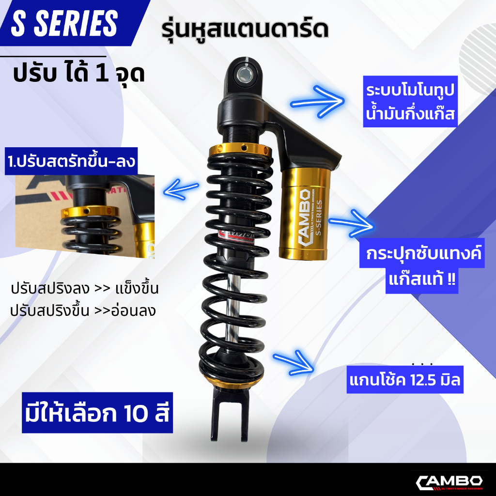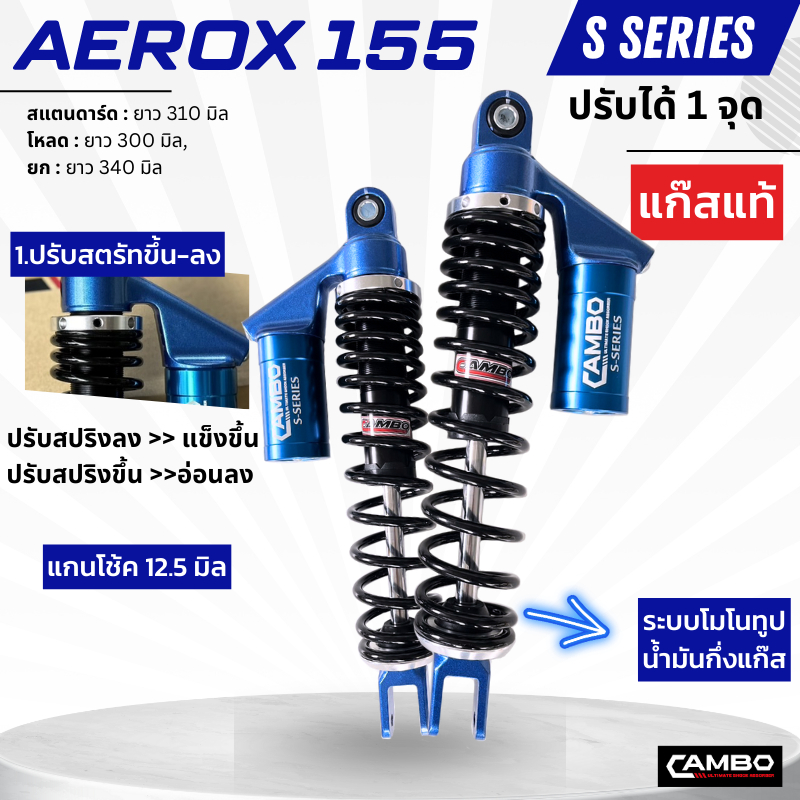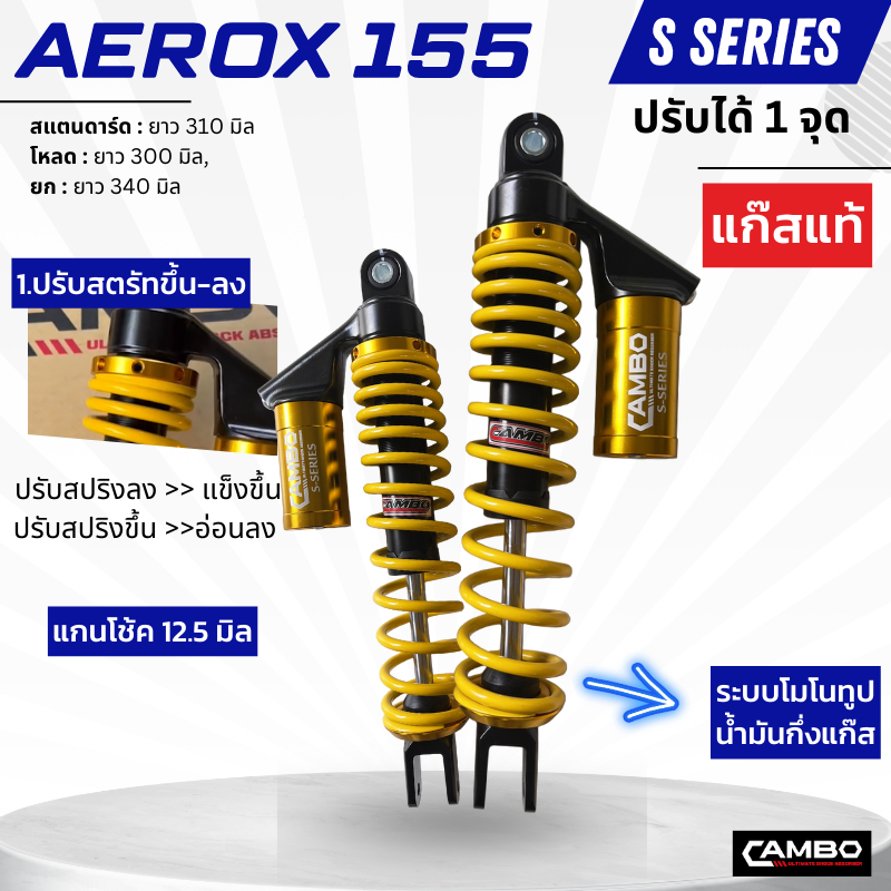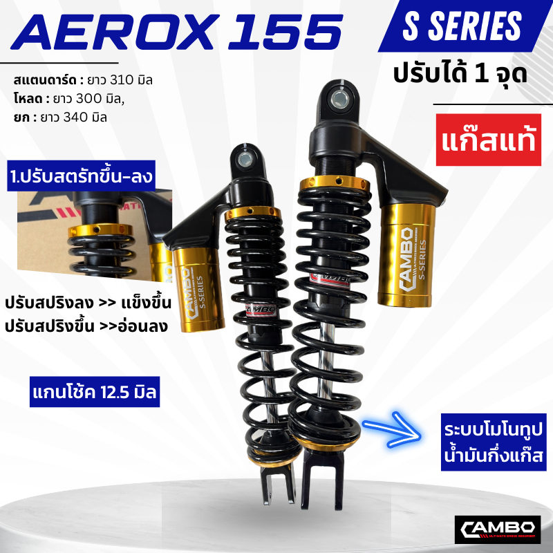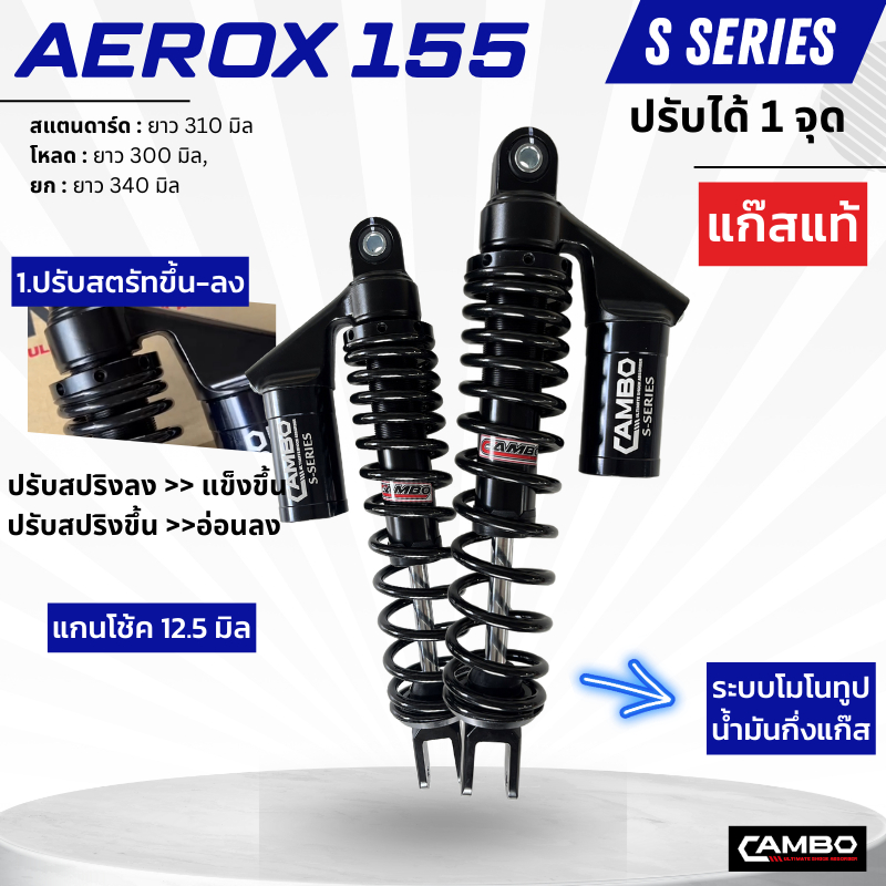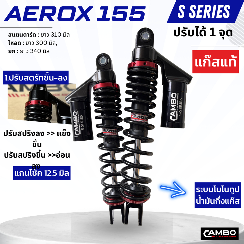 CAMBOโช๊คอัพน้ำมันกึ่งเเก๊สมอเตอร์ไชด์กระบอกคู่คู่หลังAEROX155(ความยาว310มิล) HST9131