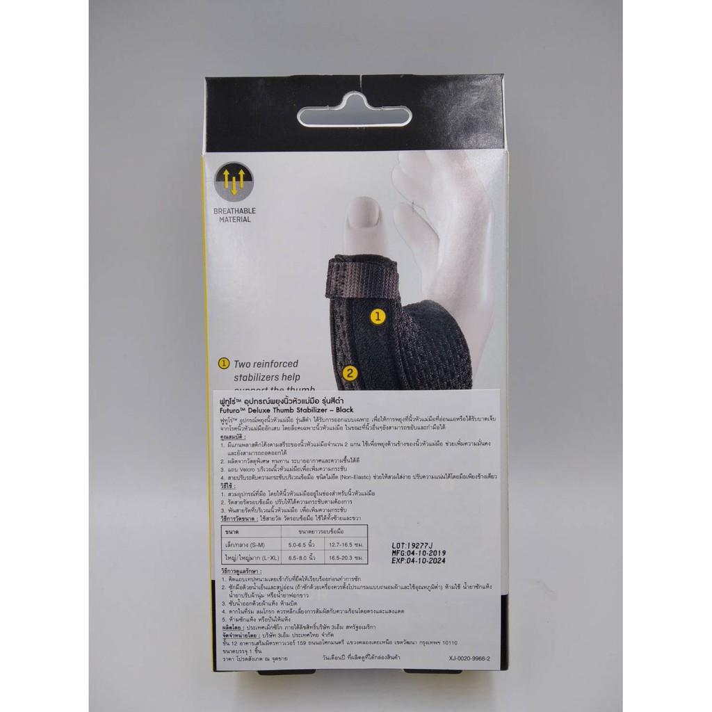 อุปกรณ์พยุงนิ้วหัวแม่มือ รุ่นสีดำ ได้รับการออกแบบเฉพาะ เพื่อให้การพยุงที่นิ้วหัวแม่มือที่อ่อนแอหรือได้รับบาดเจ็บจากโรคนิ้วหัวแม่มืออักเสบ โดยล็อคเฉพาะนิ้วหัวแม่มือ ในขณะที่นิ้วอื่นๆยังสามารถขยับและกำมือได้