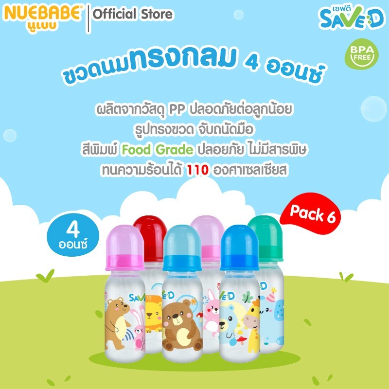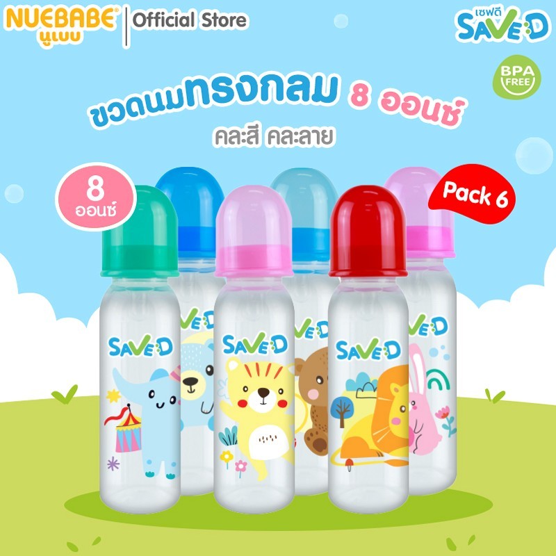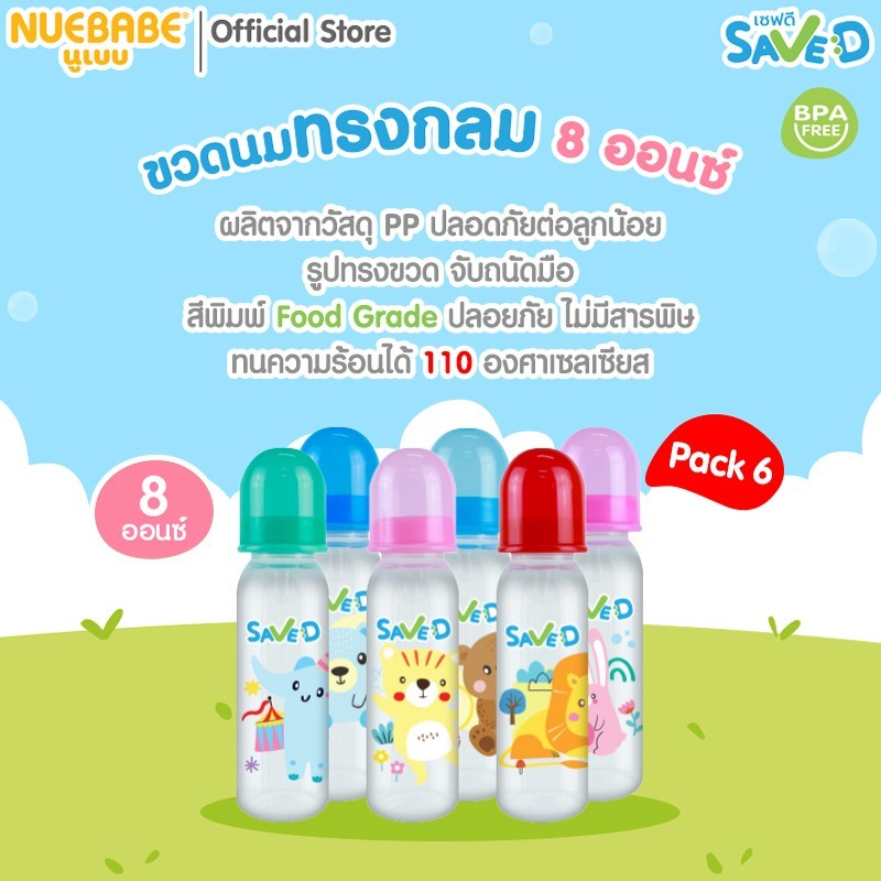 Save D ขวดนมทรงกลม 8Oz หรือ 4Oz Pack 6 ขวด