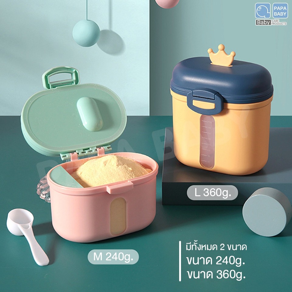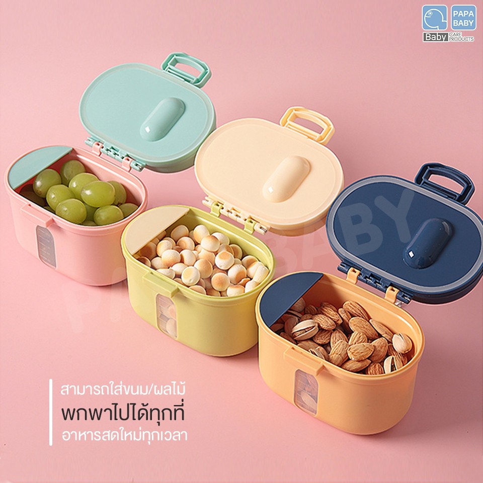 PAPA BABY กล่องเก็บนมผงมีช้อนและที่ปาดนมผงในตัว รุ่นUSE1311-2 ขนาดพกพา กล่องอเนกประสงค์เป็นสูญญากาศ อากาศไม่เข้า BPAFree