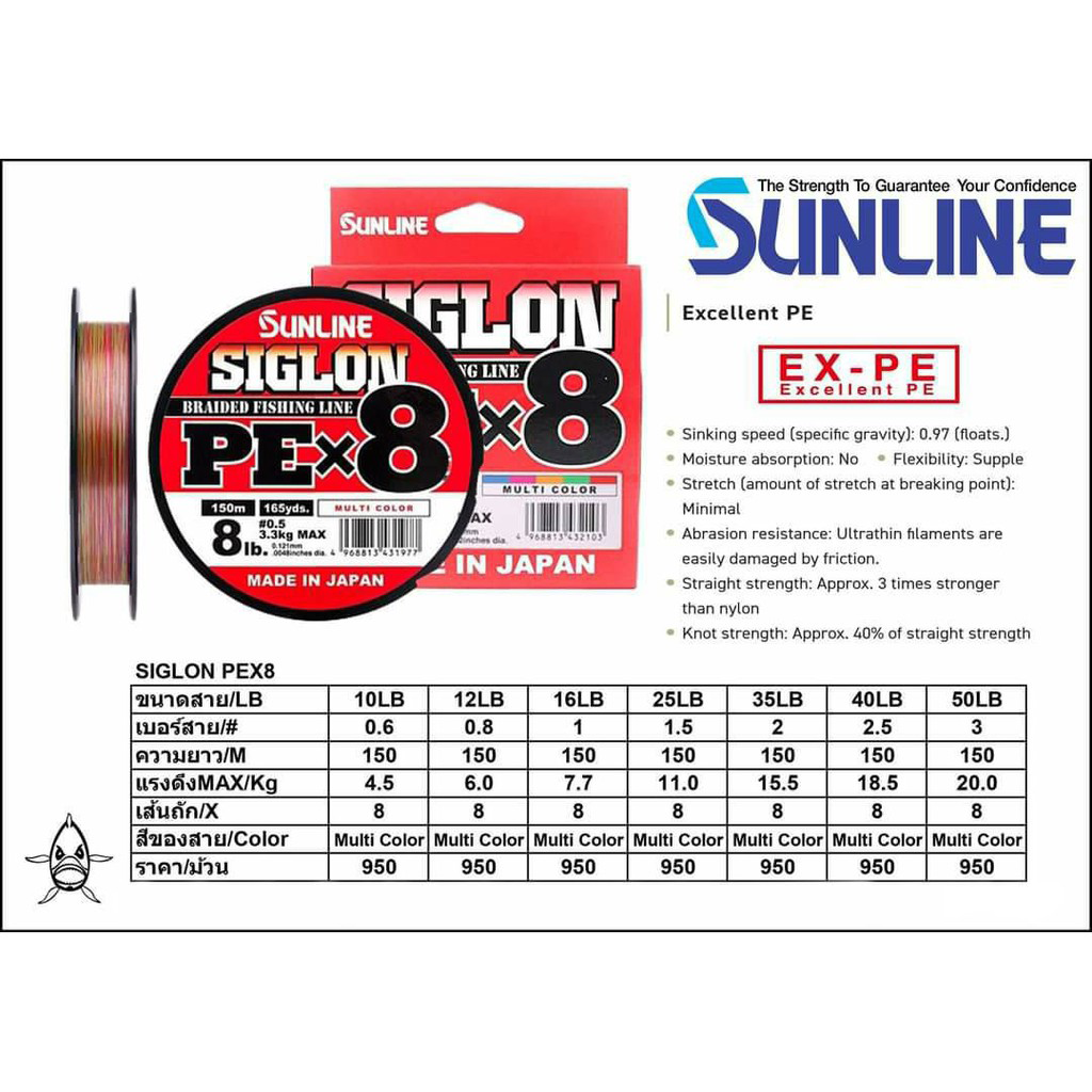 SUNLINE SIGLON PE X8 พีอีถัก8 จากญี่ปุ่น คุณภาพดี สายเล็ก เหนียว ยาว 150 เมตร