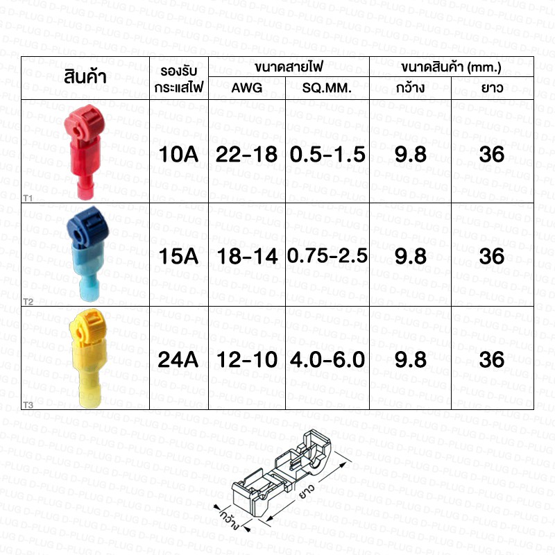 T1 รองรับกระแสไฟ 10A | สายไฟ 0.5-1.5 SQ.MM.