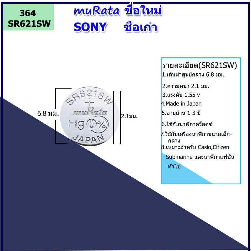 ถ่านนาฬิกาข้อมือโซนี่ Sony(muRata ชื่อใหม่) SR521/621/626/920/927/726 แบตเตอรี่่ยี่ห้อSONYของแท้ สำหรับนาฬิกาCasio