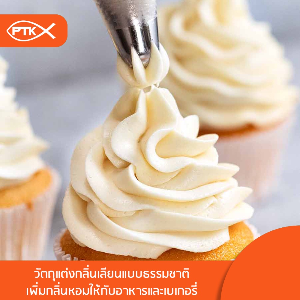 + ใช้สำหรับปรุงแต่งกลิ่นในการทำเบเกอรี่ ให้มีกลิ่นหอมน่าทาน
