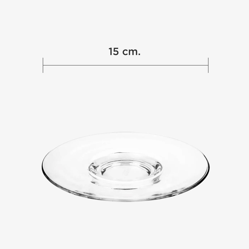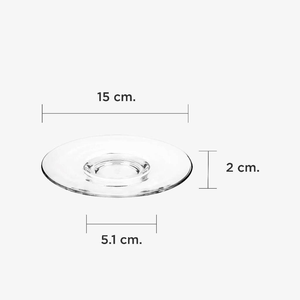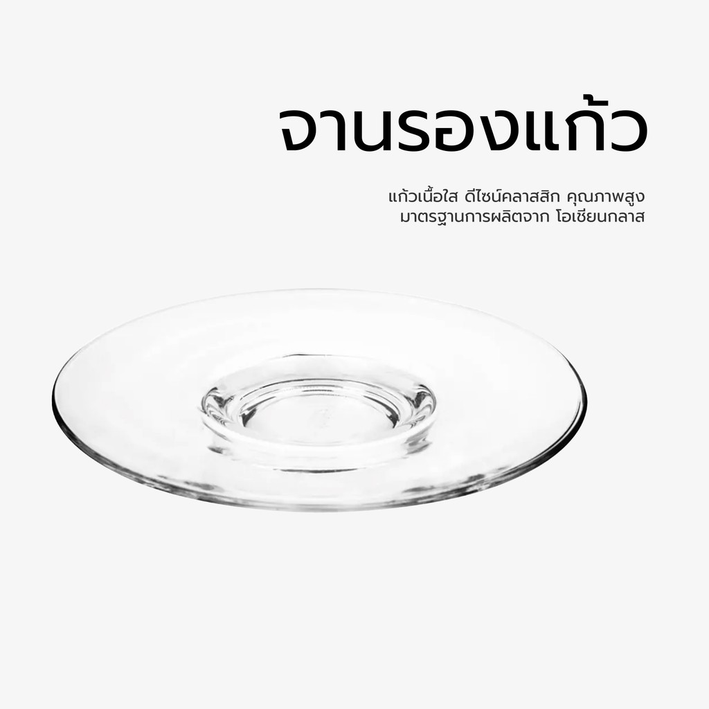 จานแก้ว สำหรับใช้รองแก้วกาแฟ เพื่อป้องกันเครื่องดื่มร้อนจากแก้ว และยังสะดวกแก่การจัดเสิร์ฟเพิ่มความสวยงาม