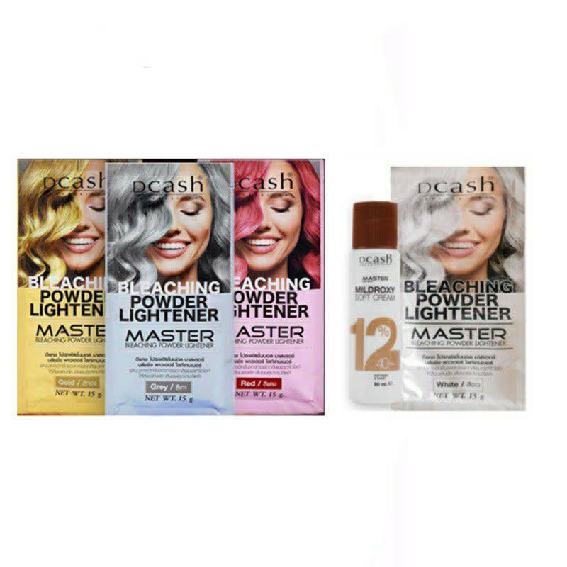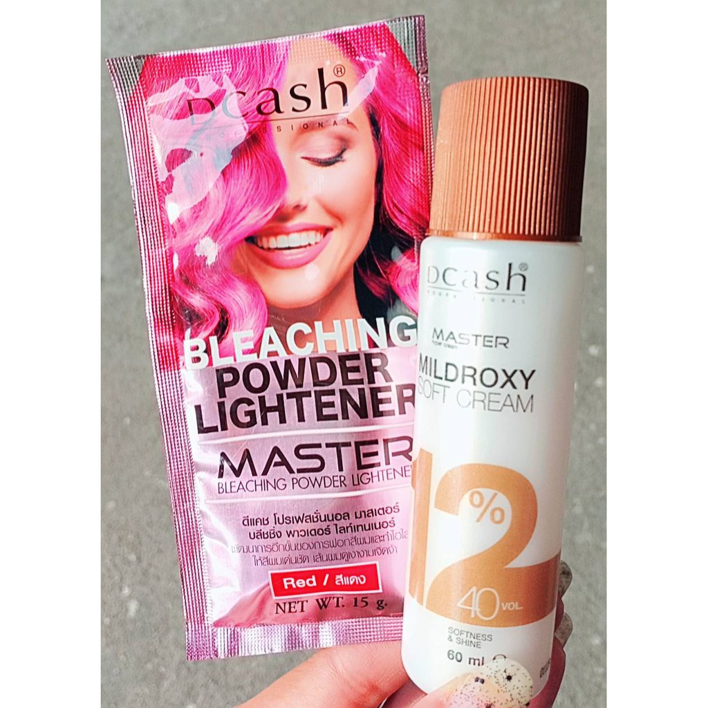 โฉมใหม่ Dcash masteสีฟอกผม ผงฟอก ผงกัด ดีแคช มาสเตอร์ บลีชชิ่ง 15g. พร้อม Mildroxy 60ml.