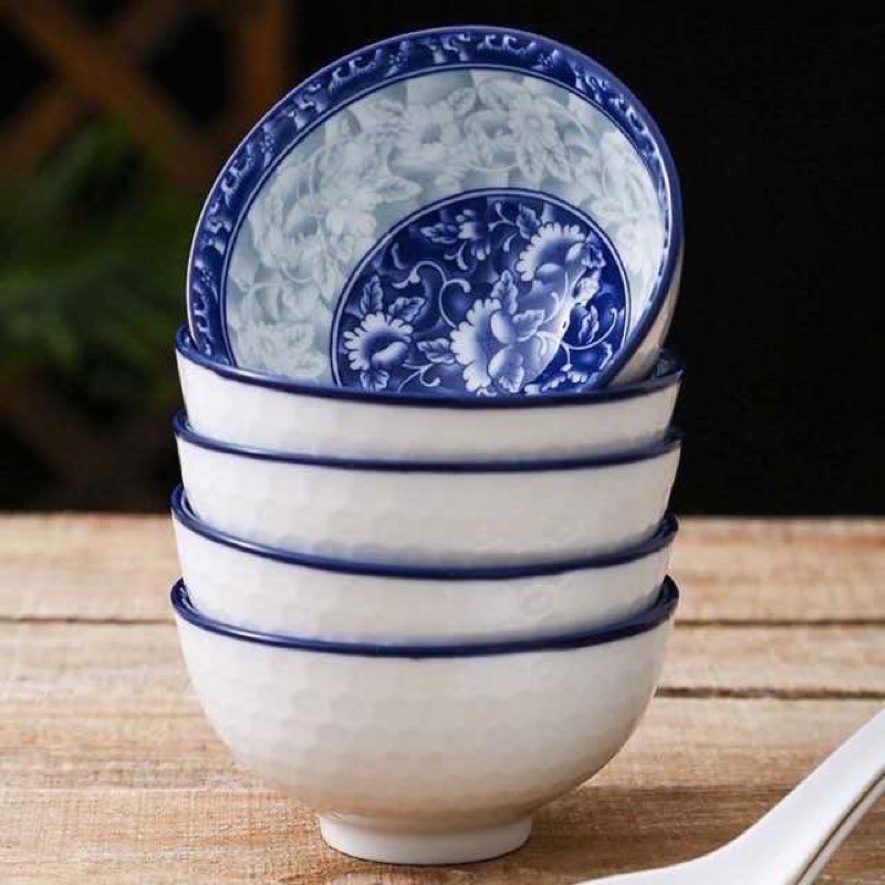 ถ้วยชาม สีสวน้ำเงิน ลายดอกไม้ ใช้ทานข้าว ขายขั้นตำ่4ชิ้น*20ไม่พร้อมกล่องเข้าไมโครเวฟได้สำหรับร้านอาหาร และใช้ในครอบครัว