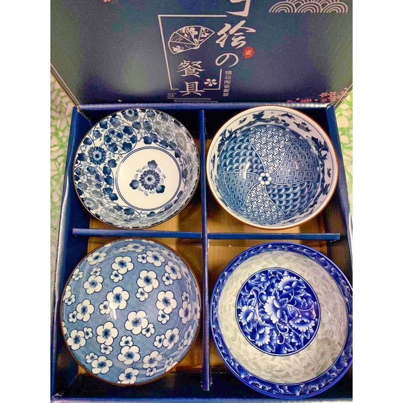 ขาย22บาท*4ชิ้น=80บาท ถ้วยชาม เซรามิกสีขาวน้ำเงิน ลายดอกไม้สวยๆ เข้าไมโครเวฟได้