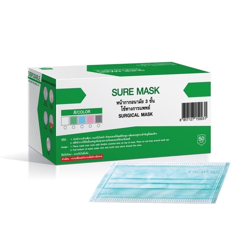 หน้ากากอนามัยทางการแพทย์SURE MASK G LUCKY ระดับ2 หนา3 ชั้น Level 2 Mask 3Layer ป้องกันฝุ่น PM 2.5
