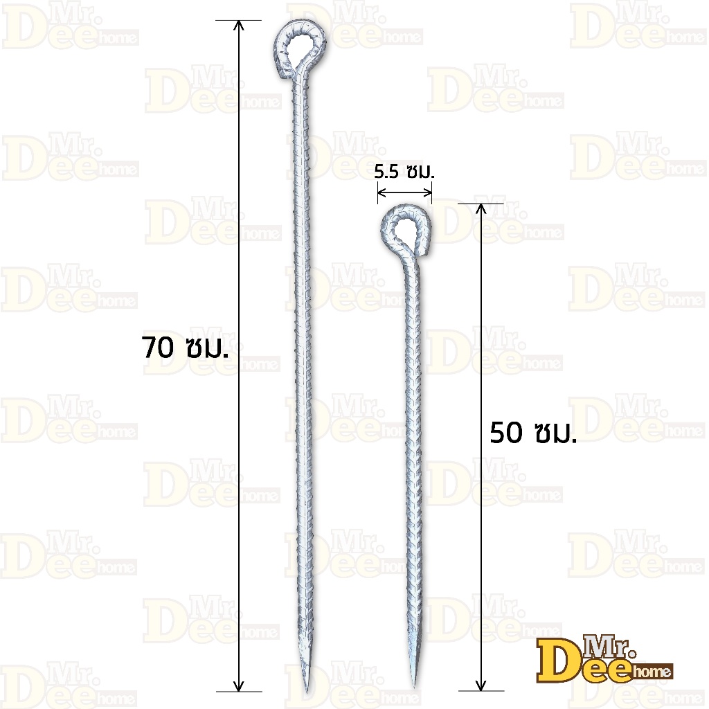 สมอบกเหล็กยาว 50 ซม. สมอบกเหล็กข้ออ้อย สมอบกเหล็กปัก ขนาด 5หุน (5/8 นิ้ว หรือ16มิล) ปลายแหลม แข็งแรง ทนทาน