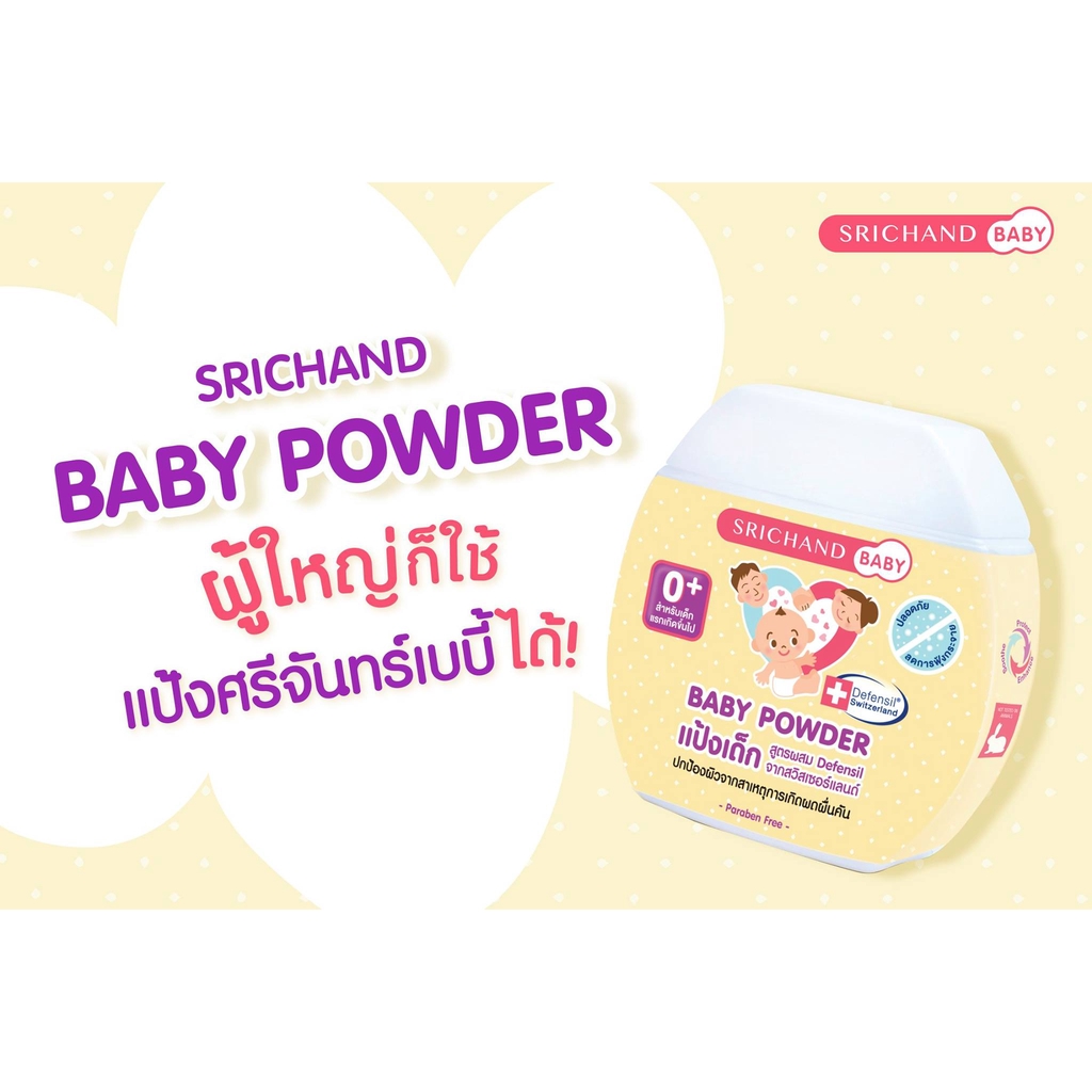 ศรีจันทร์เบบี้ คือ แป้งเด็กสูตรพิเศษ เพื่อปกป้องผิวจากการใส่ผ้าอ้อมเป็นเวลานาน มีส่วนผสมของ Defensil จากประเทศสวิตเซอร์แลนด์ที่เคลือบอยู่บนผิวชั้นนอก ไม่ซึมลงสู่ผิว ช่วยบร