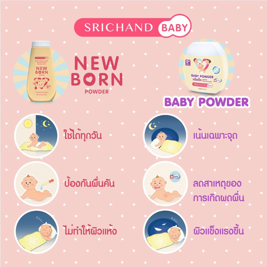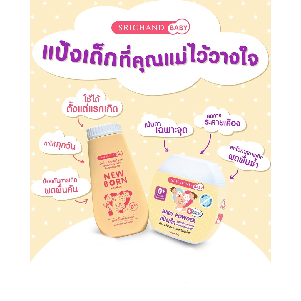 แป้งเด็ก ศรีจันทร์เบบี้ SrichandBaby Baby Powder แป้งฝุ่นโรยตัวสูตรพิเศษ 50 กรัม