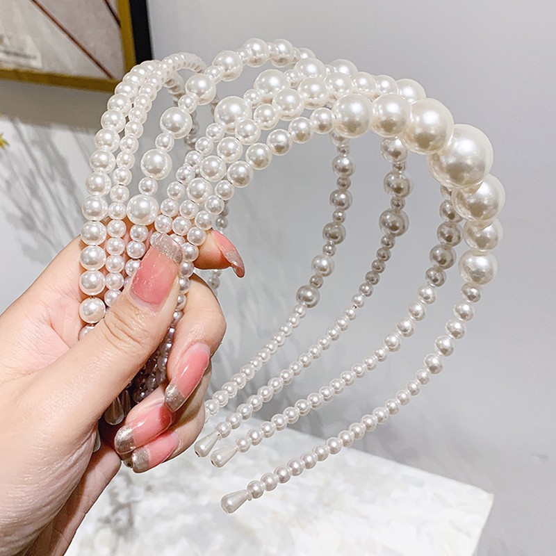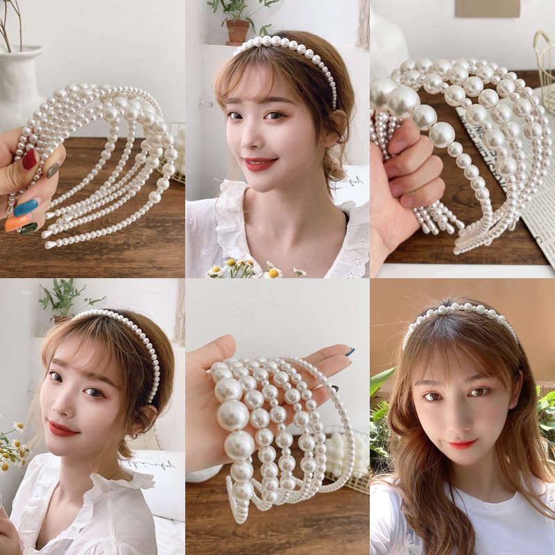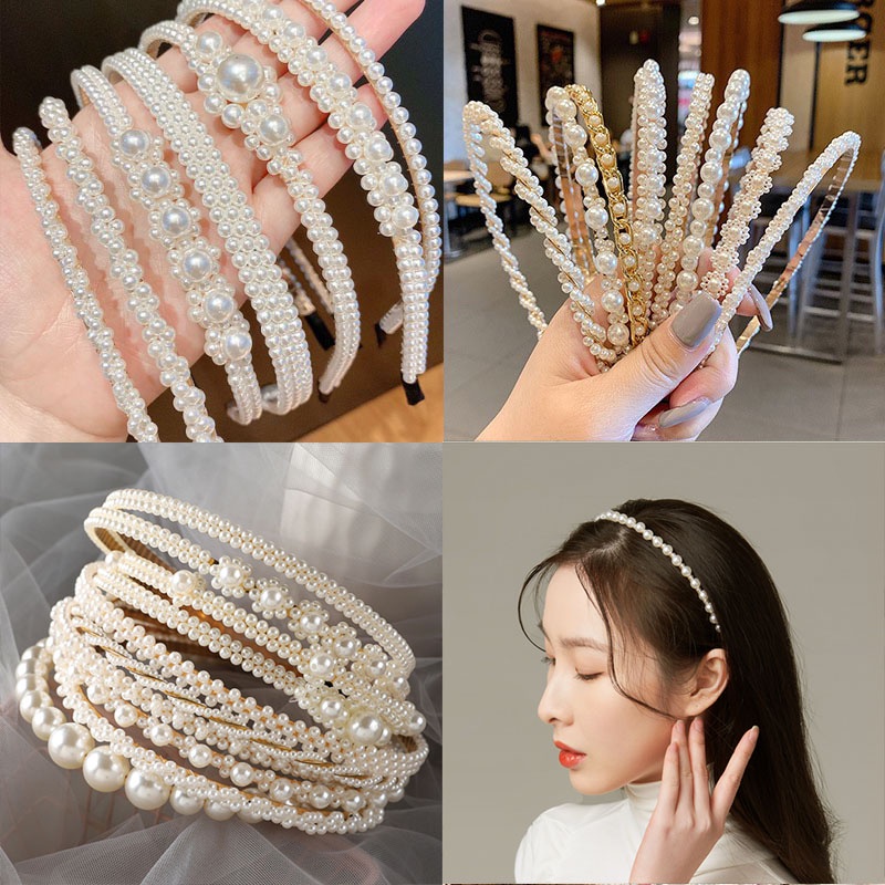 ที่คาดศีรษะประดับมุกสไตล์เกาหลีเรียบง่ายสําหรับผู้หญิง