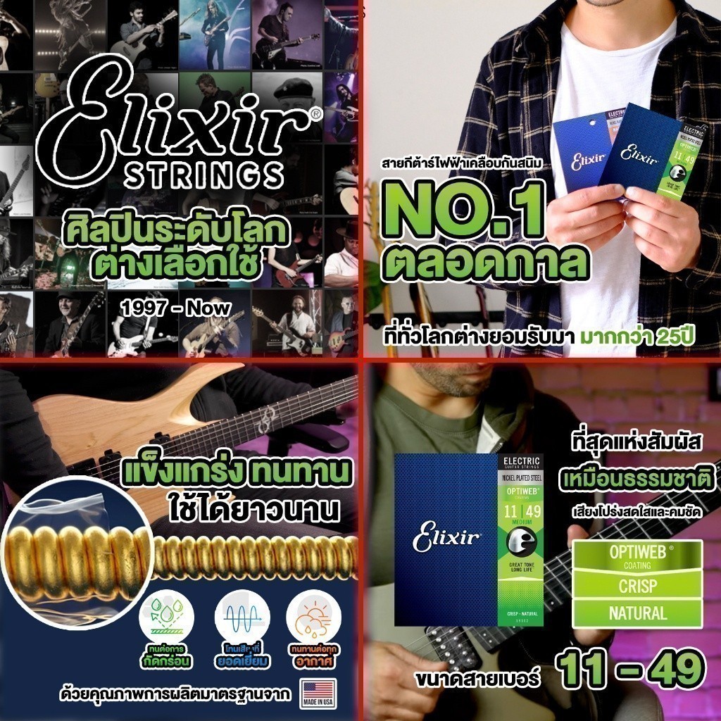 ทักแชทรับส่วนลด 2,000.- Elixir Optiweb Nickel Plated Steel สายกีต้าร์ไฟฟ้า Elixir Electric Guitar Strings – เต่าแดง