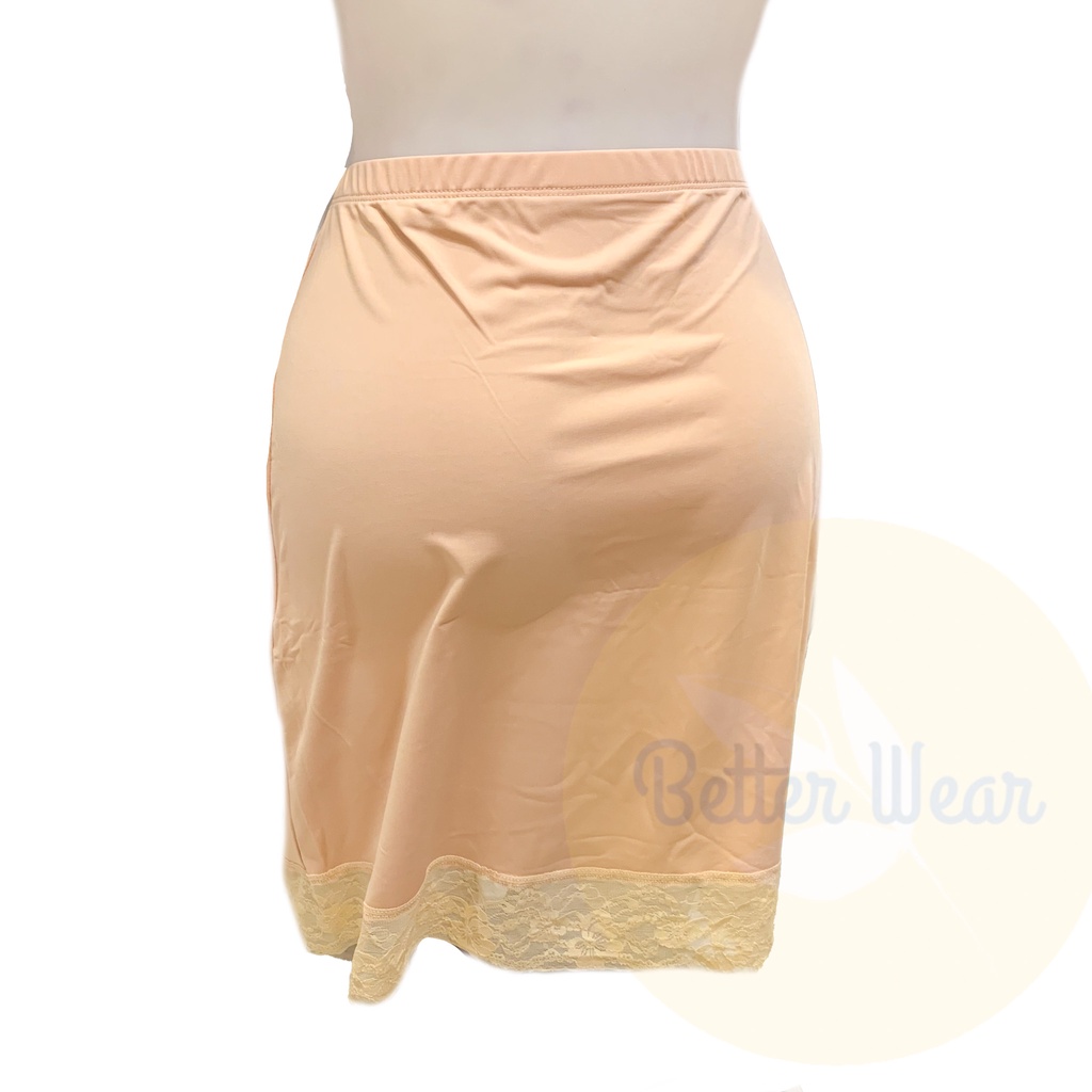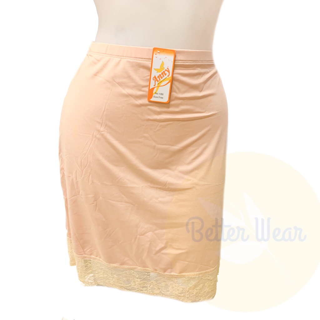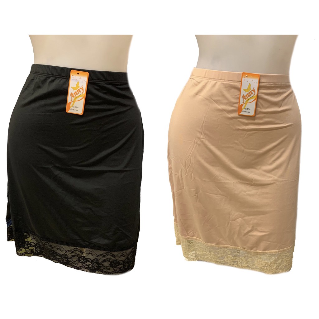 Anny186 กระโปรงซับในชายลูกไม้ เนื้อผ้าลื่นใส่สบาย ความยาวบนเข่า