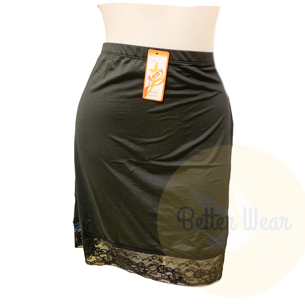 Anny 186 กระโปรงซับในชายลูกไม้ เนื้อผ้าลื่นใส่สบาย ความยาว 48 ซม. สีดำ เนื้อ