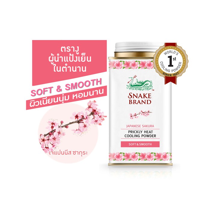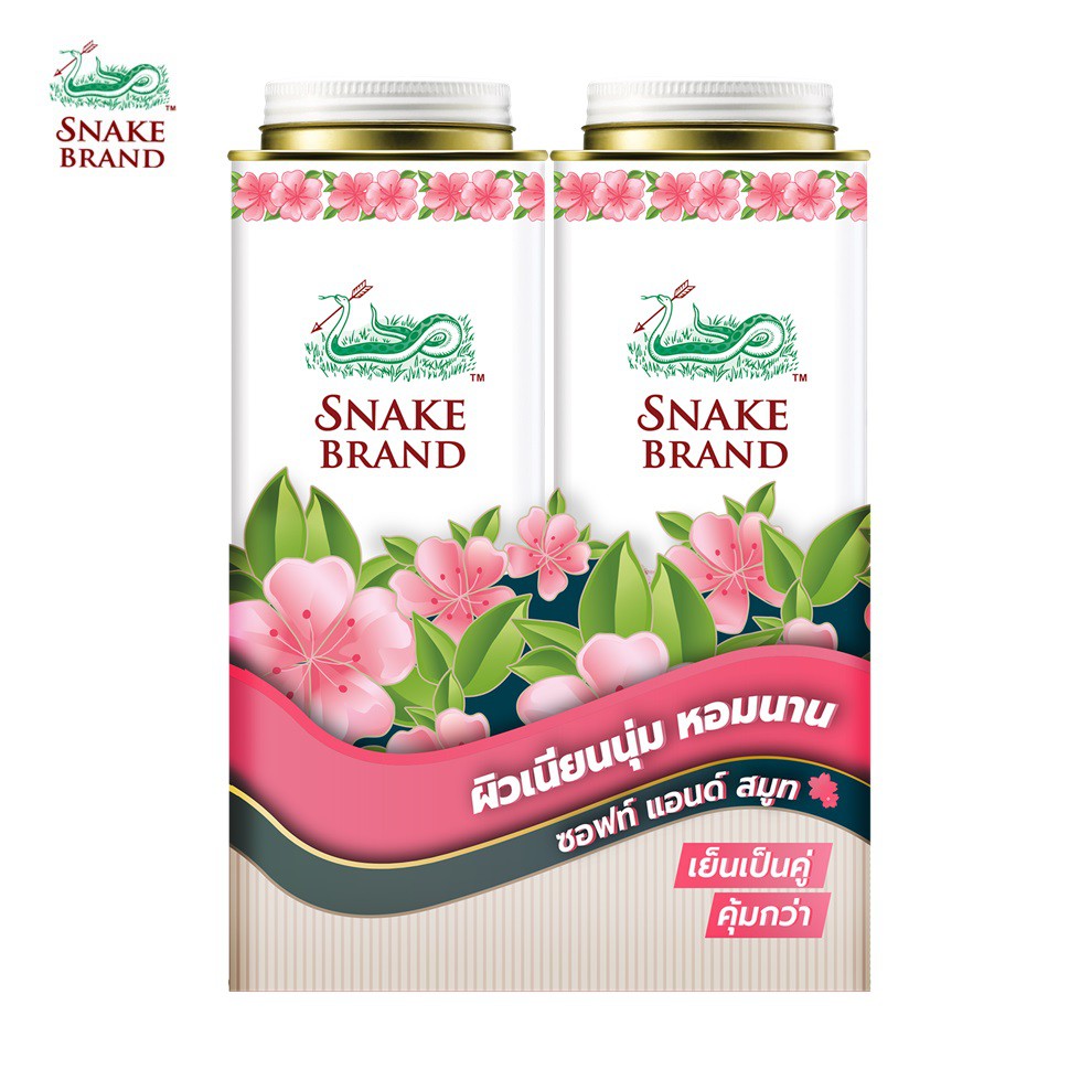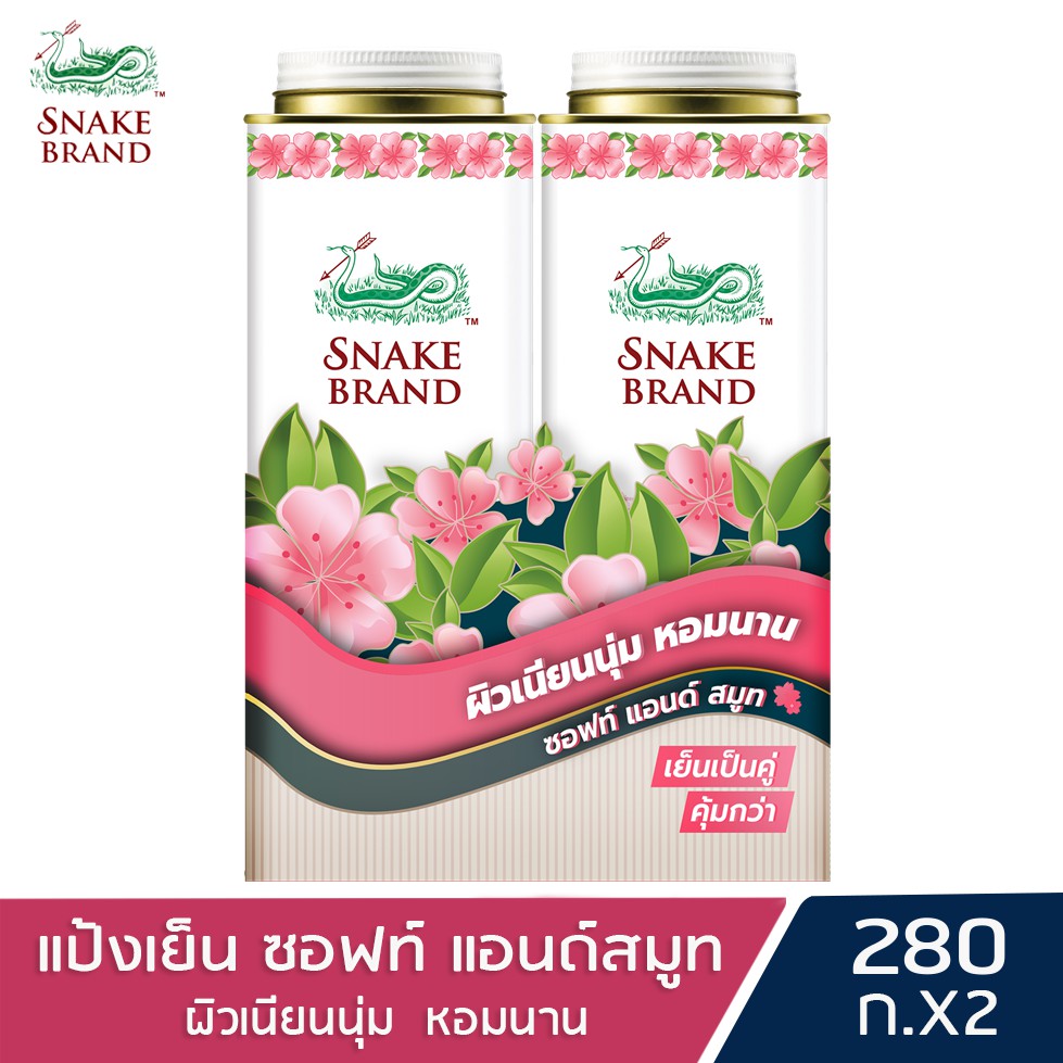 Snake Brand แป้งเย็น ซอฟท์&สมูท ซากุระ 280g x2 – Soft & Smooth twinpack l ผิวเนียนนุ่ม หอมนาน