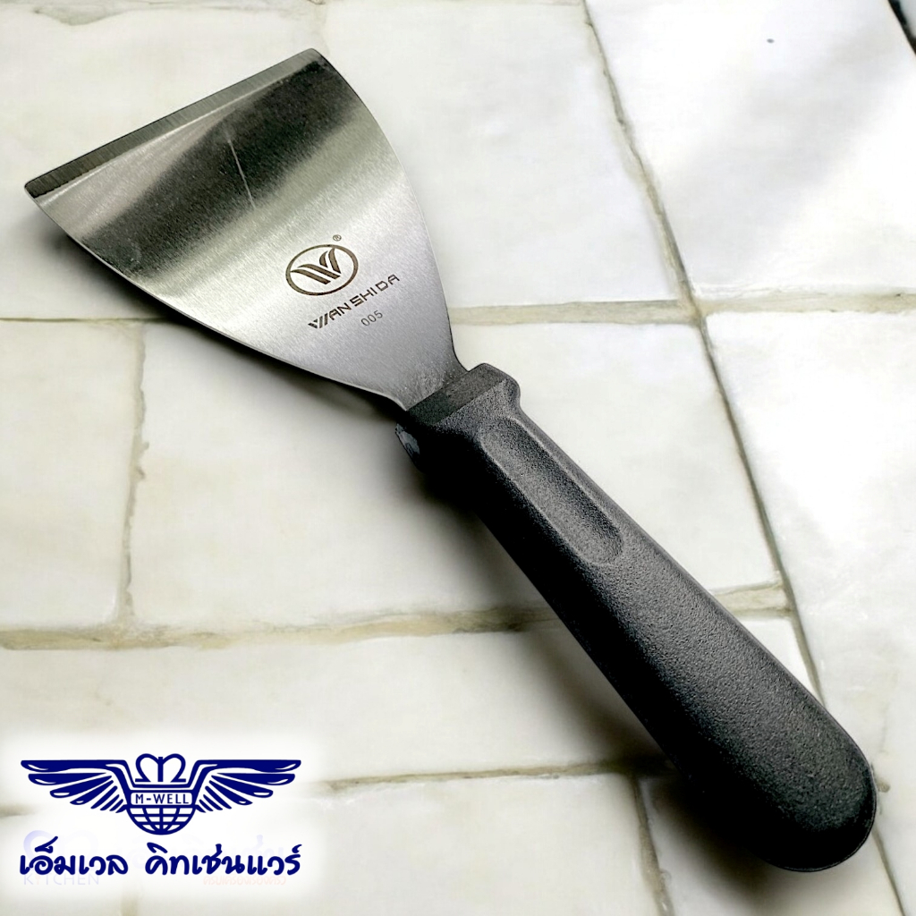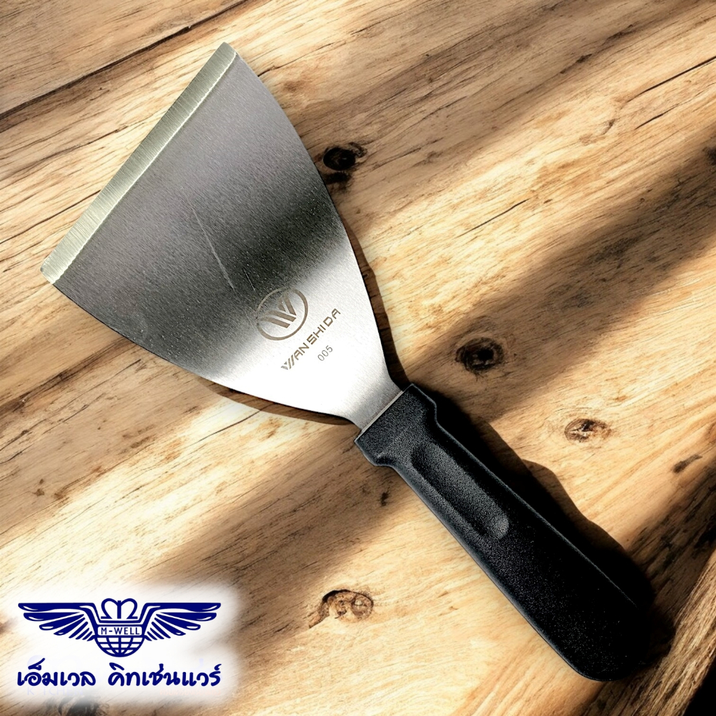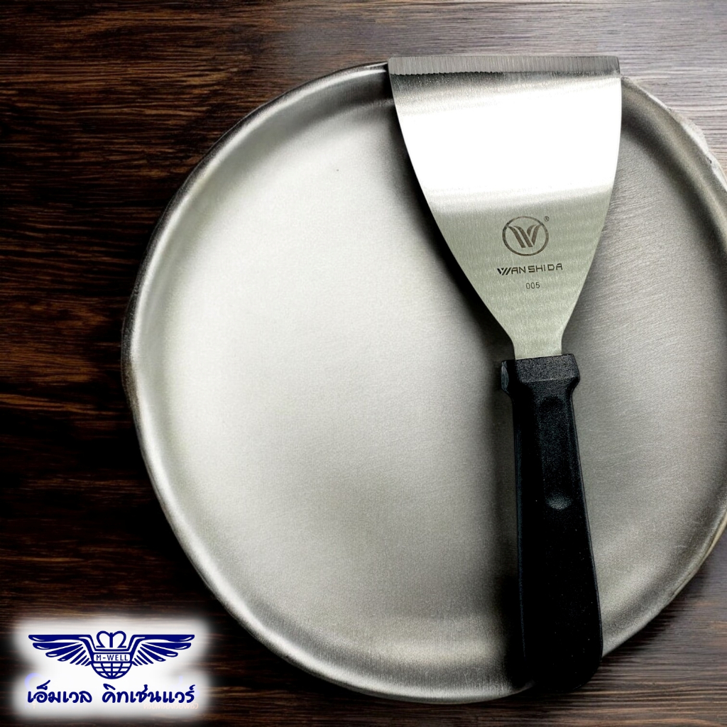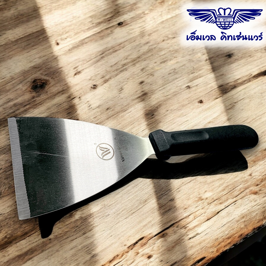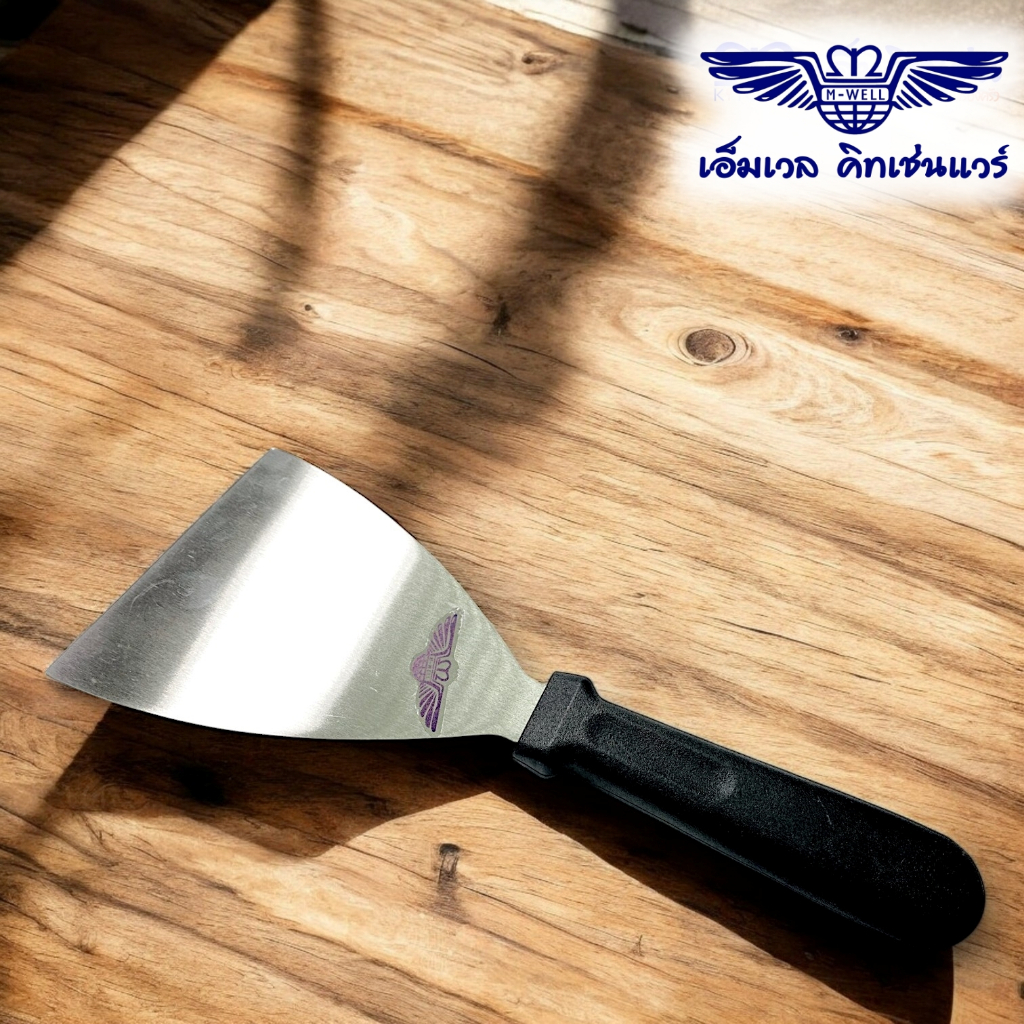 M Well Kitchenware ตะหลิวเกรียงสเตนเลสญี่ปุ่นด้ามพลาสติกสีดำ เกรียงทำอาหาร กว้าง10cm ยาว 24.5cm