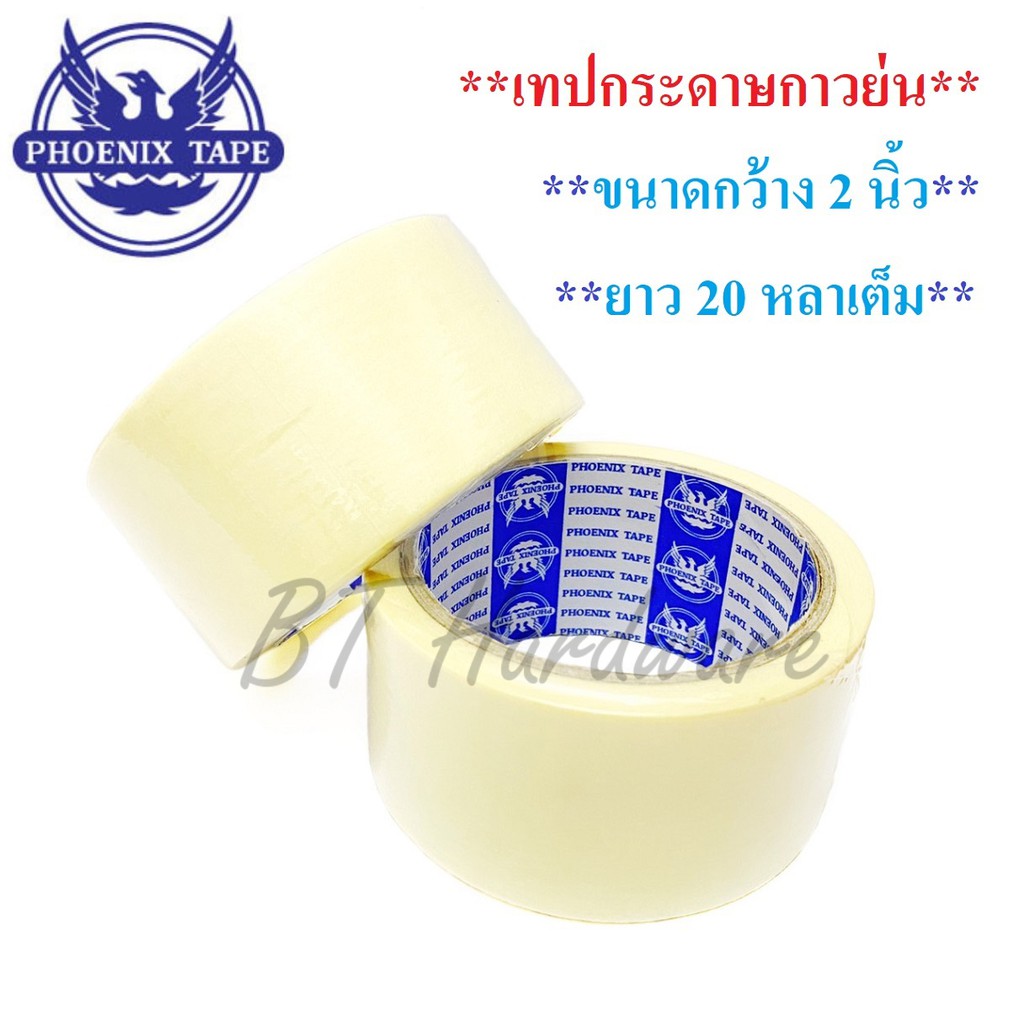 PHOENIX เทปกระดาษกาวย่น ขนาดกว้าง 1 และ 2 นิ้ว ยาว 20 หลา