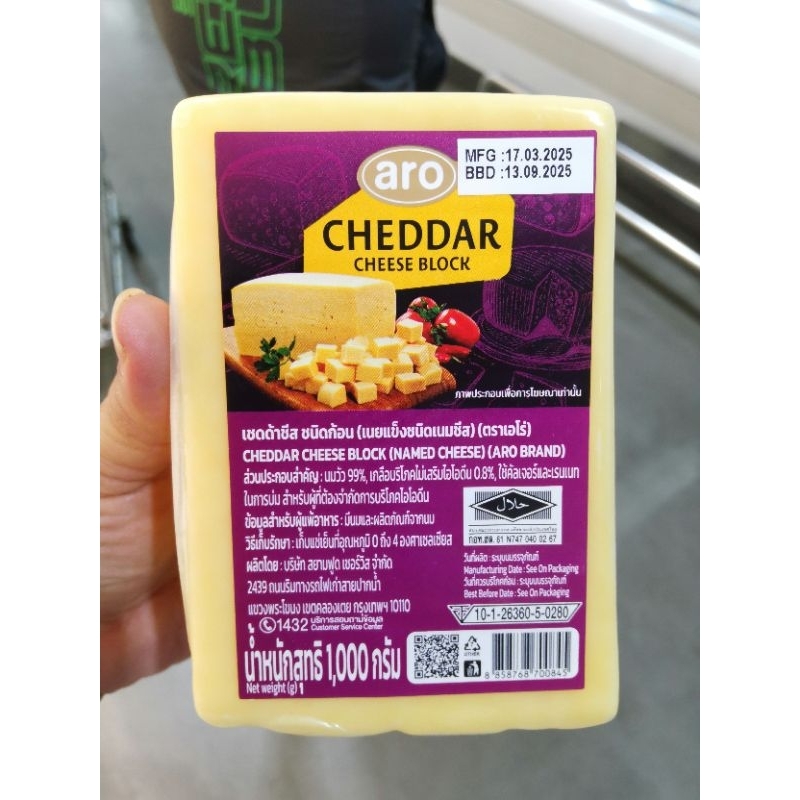 ecook ปรับฉลากใหม่ เชดด้าชีส เนยแข็ง ชนิด เนมชีส aro cheddar cheese block 1000g