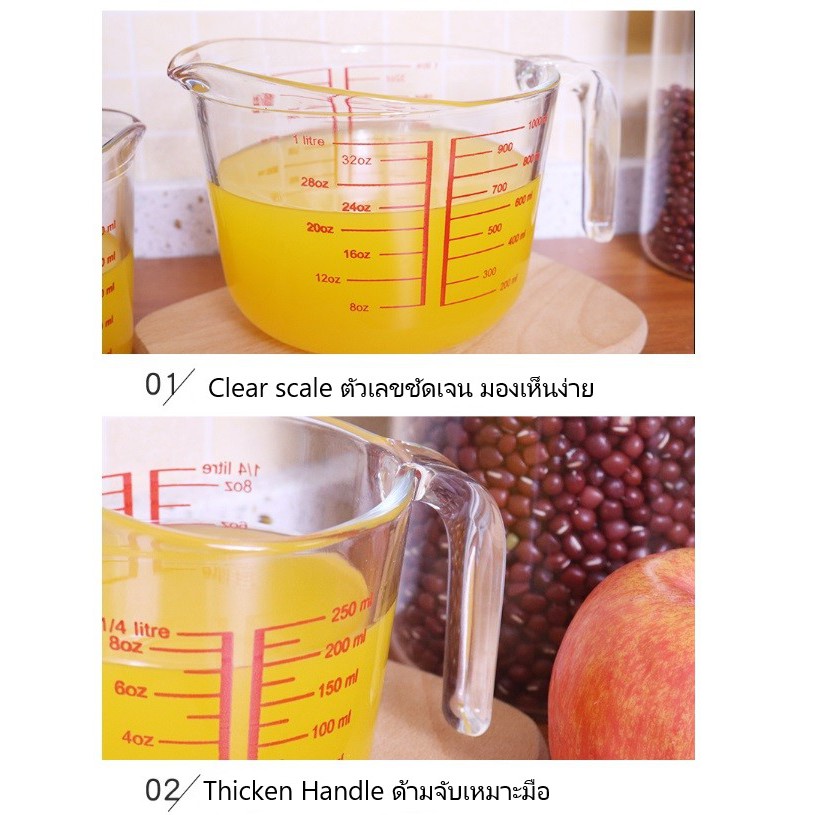 แก้วตวง แก้วตวงน้ำ ถ้วยตวง ถ้วยตวงแก้ว แก้วตวงชงกาแฟ แก้วตวงกาแฟ แก้วตวงชา ทำจากแก้วอย่างหนา คุณภาพดี