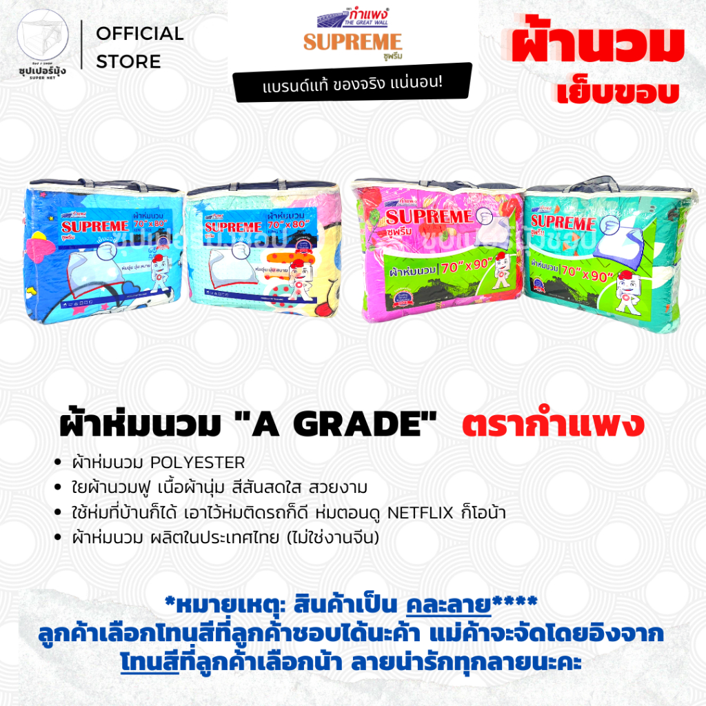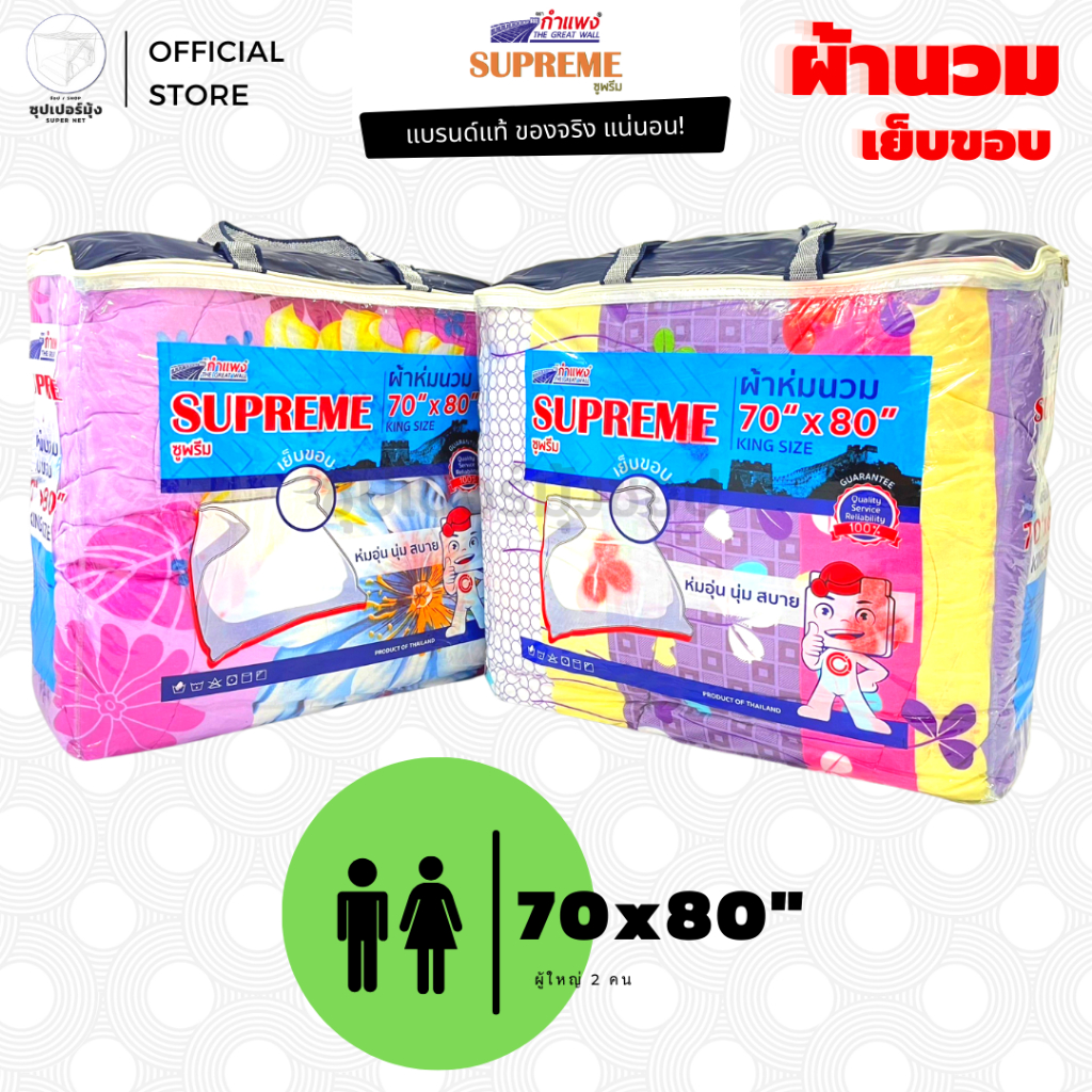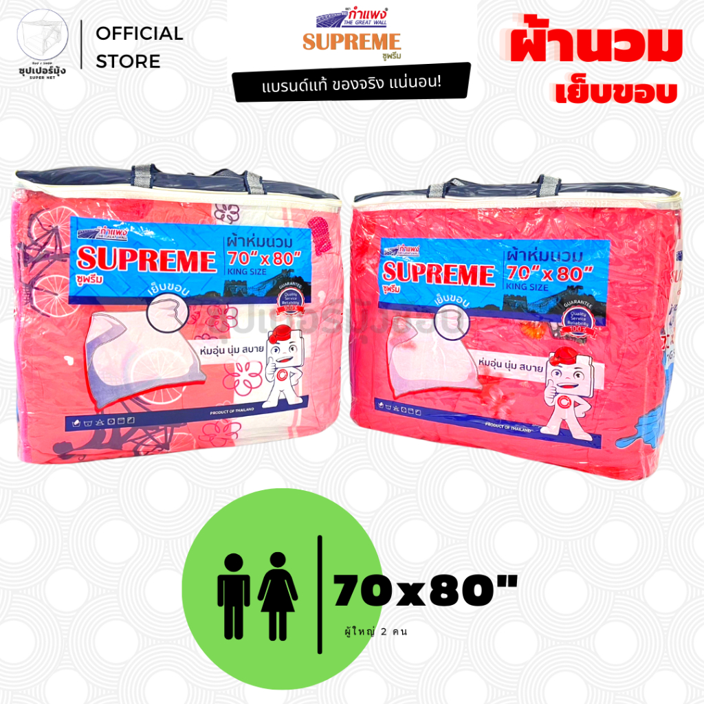 ผ้าห่มนวม ขนาด(70×80)นิ้ว (6ฟุต KING SIZE) เย็บขอบ กุ๊นขอบ ตรากำแพง ซูพรีม (ผ้าห่ม ผ้านวม อเนกประสงค์)