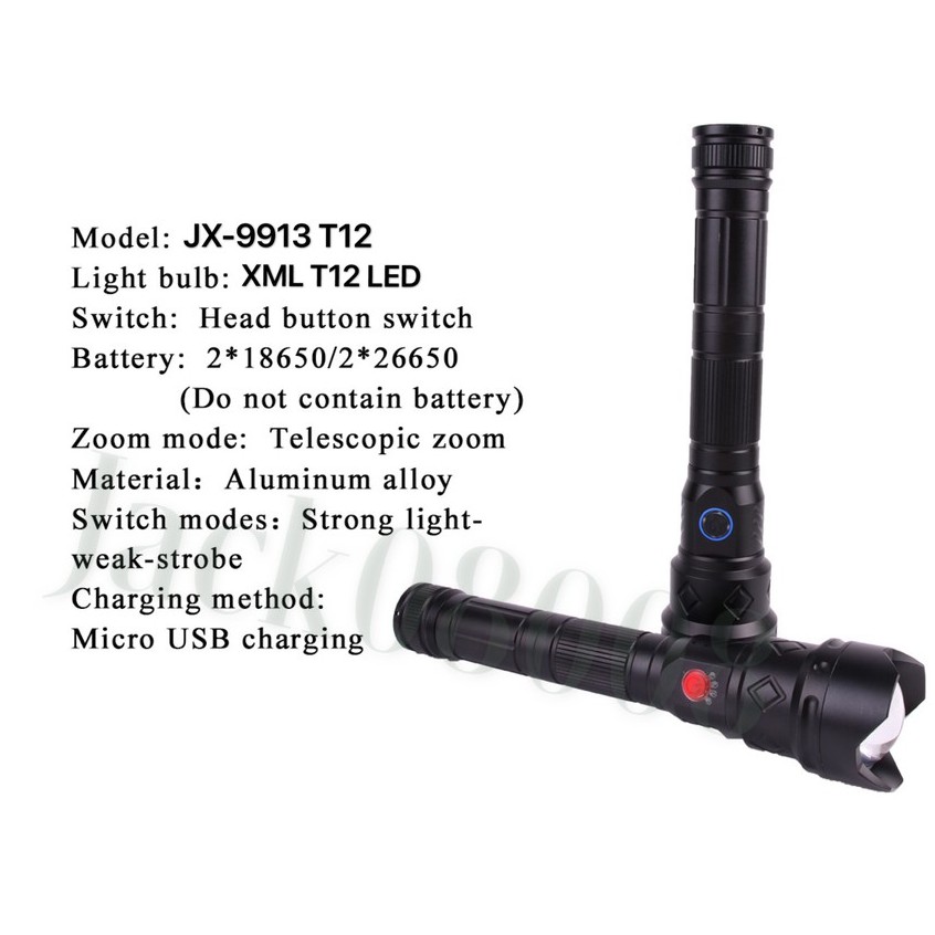 ไฟฉายแรงสูง LED สว่างมาก ไฟฉายซูม 5 โหมด XML T12 LED 69000w สว่างมาก แข็งแรง ทนทาน ชาร์จไฟ มี 4 รุ่น