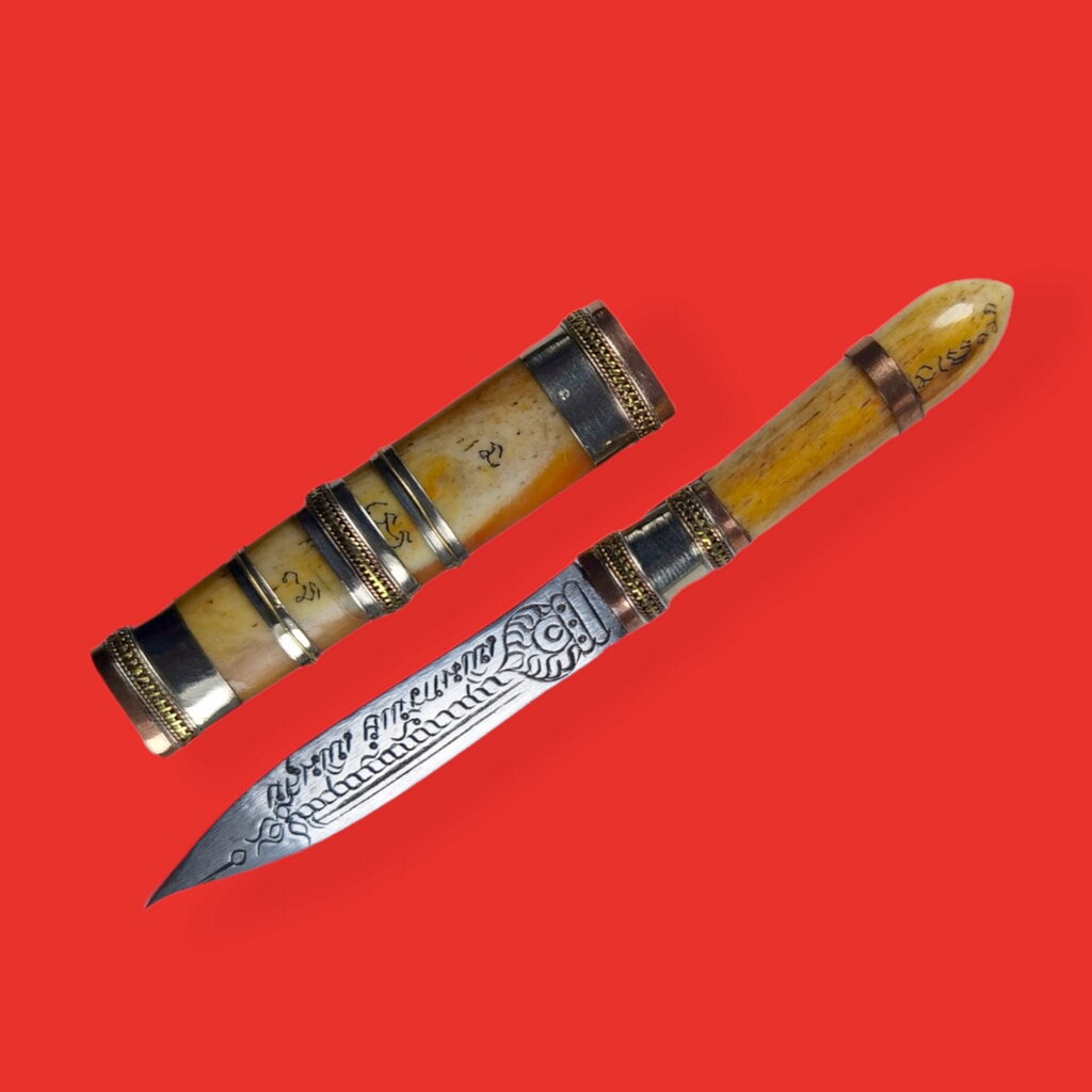 มีดหมอปากกา กระดูกแกะ หลวงปู่หงษ์ วัดเพชรบุรี อ.ปราสาท จ.สุรินทร์ ขนาดใบมีด 2.5 นิ้ว