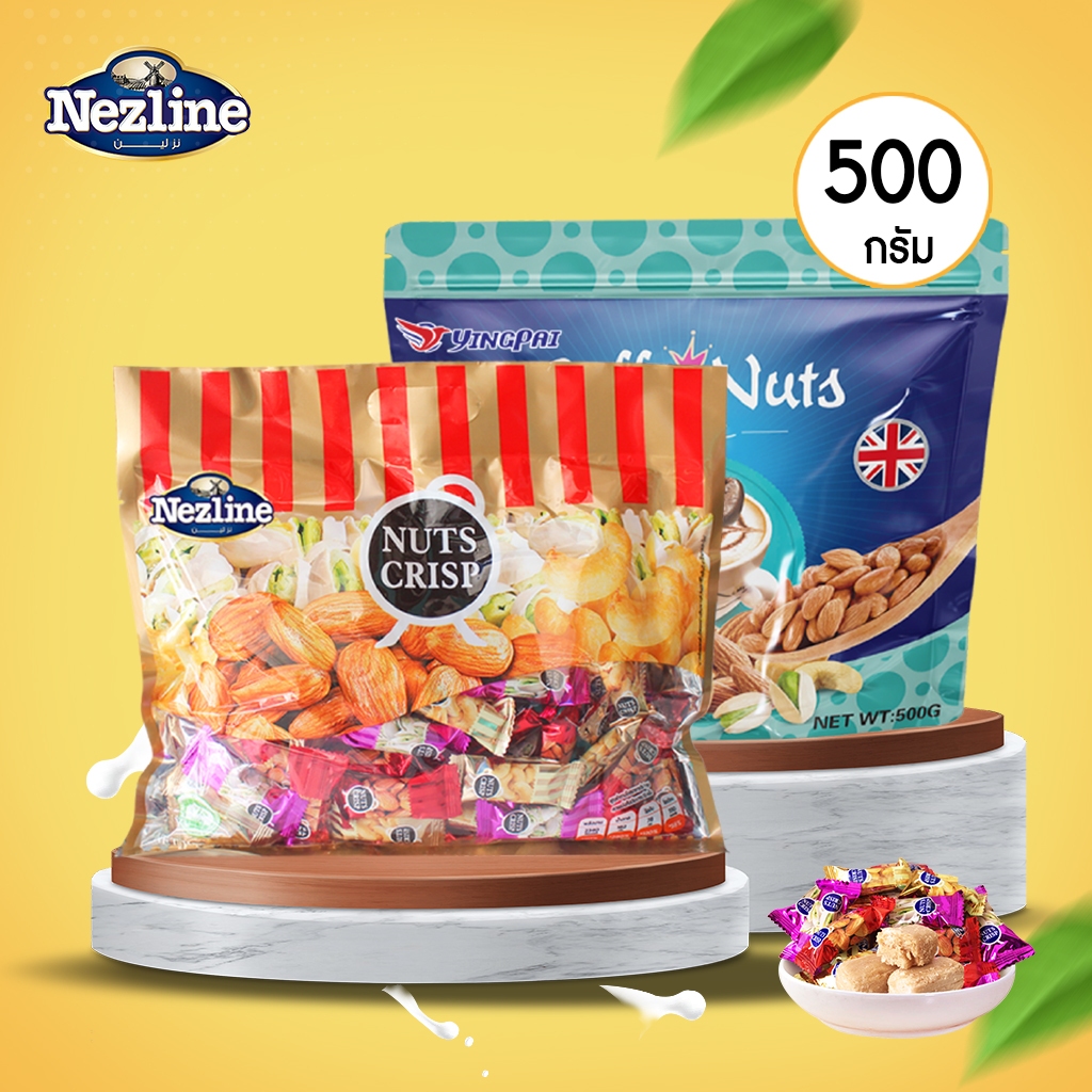 (เลือกรสชาติ) Nezline Nuts Crisp ถั่วตุ๊บตั๊บ ถั่วอัดแท่ง อัลมอนด์ พิชตาชิโอ 500 กรัม 3 รสชาติ ตราเนสไลน์