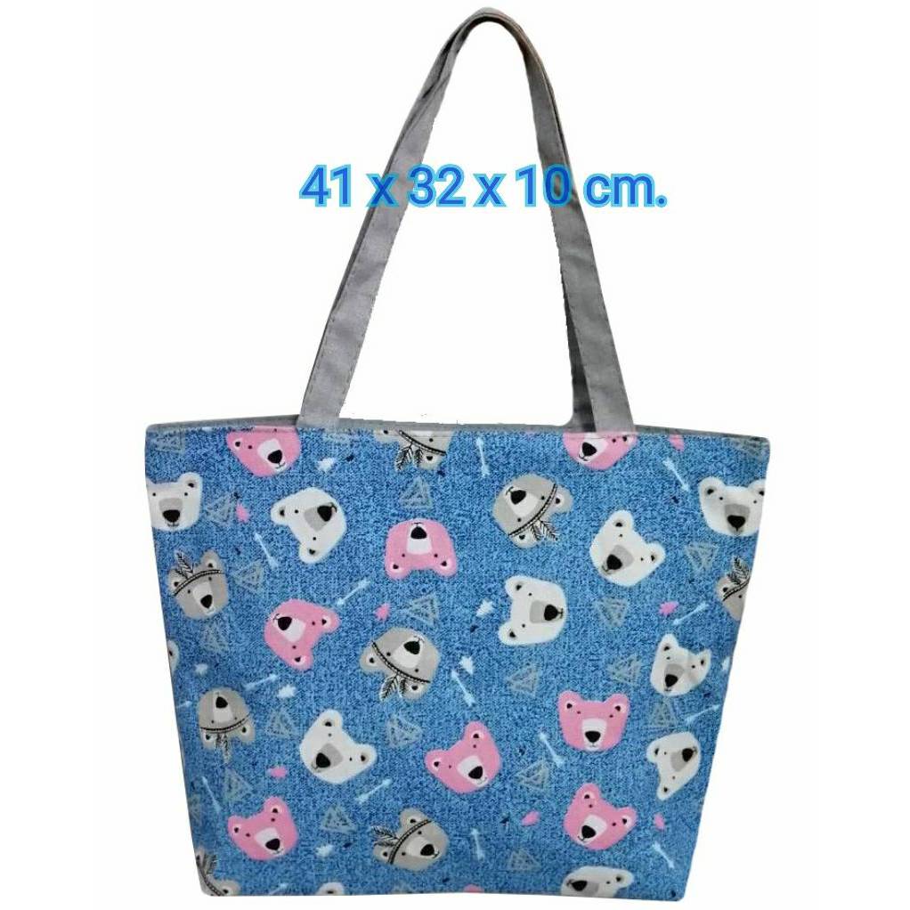 กระเป๋าผ้าเนื้อหนา 59฿ สุดคุ้ม เย็บ 2 ชั้น มีซิป เปิด-ปิด สะพายสะดวก มีให้เลือก 22 ลาย