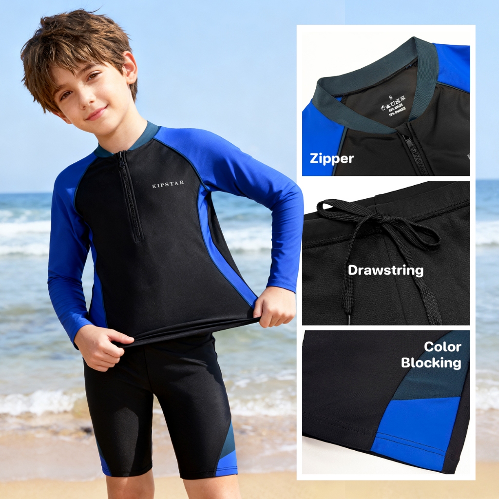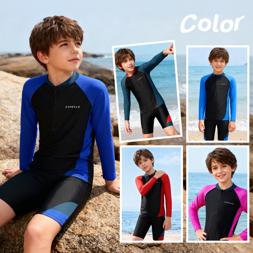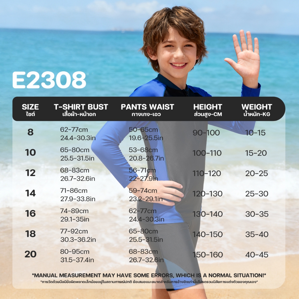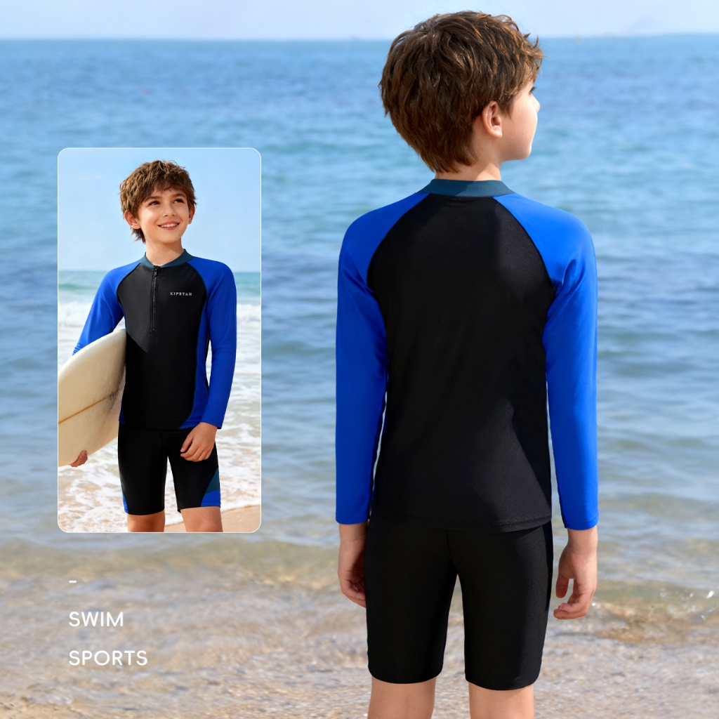 ชุดว่ายน้ำเด็กชายหญิง ชุดว่ายน้ำแขนยาวขาสามส่วน ชุดว่ายน้ำเด็กแยกชิ้น ชุดว่ายน้ำเด็กสีพื้น ชุดว่ายน้ำเด็ก2ชิ้น E2308