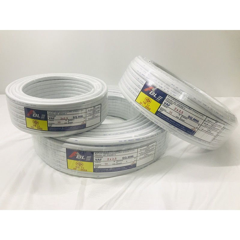 หยิบใส่ตะกร้าสายไฟVAF2X1 สายคู่สีขาวVAF ยาว90เมตร ราคากันเอง จากโรงงานโดยตรง มี ม.อ.ก