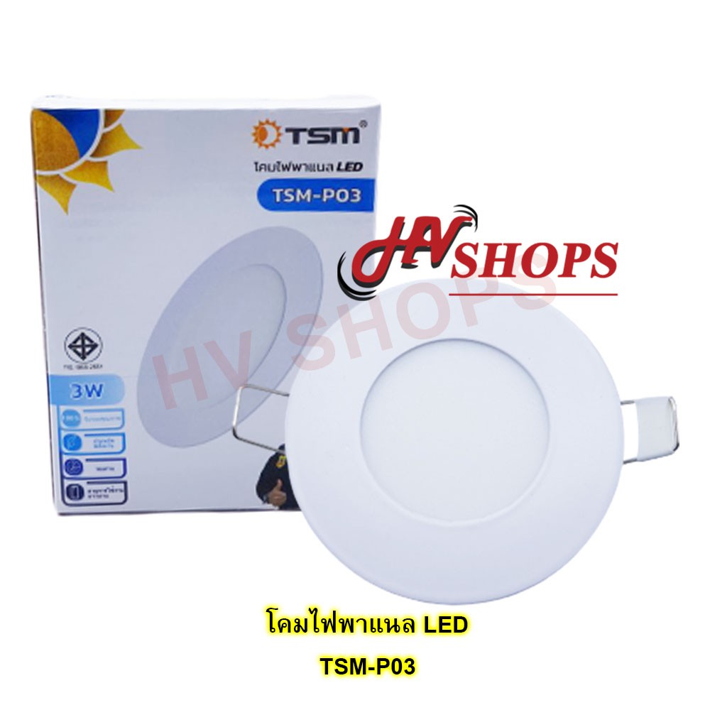 ไฟเพดานแบบดาวน์ไลท์ ไฟพาแนลดาวน์ไลท์แบบ led ยี่ห้อ TSM-P03 ประหยัดพลังงาน เป็นดาวไลท์เพดาน ไฟติดฝ้าแสงขาว โคมไฟเพดานวงกลม 3W 6500K จาก HVshops