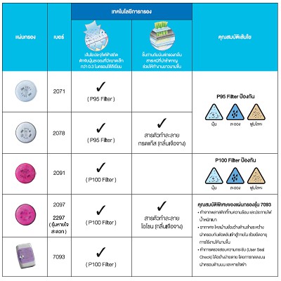 - แผ่นกรองอนุภาคมาตรฐาน P95 ใช้กรองฝุ่น ละออง ฟูมโลหะ สำหรับหน้ากากไส้กรองคู่ มีประสิทธิภาพการกรองไม่ต่ำกว่า 95%