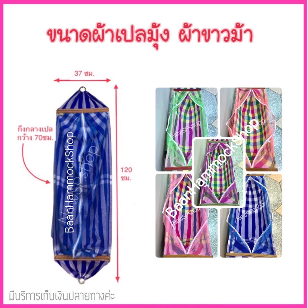 ผ้าเปลมุ้ง ผ้าขาวม้าคละลาย เปลลึก ห่อตัวดี หลับง่าย นอนสบาย แข็งแรง รับน้ำหนักได้ถึง 25กก.#ผ้ามุ้ง#เปลมุ้งเด็ก#ผ้าขาวม้า