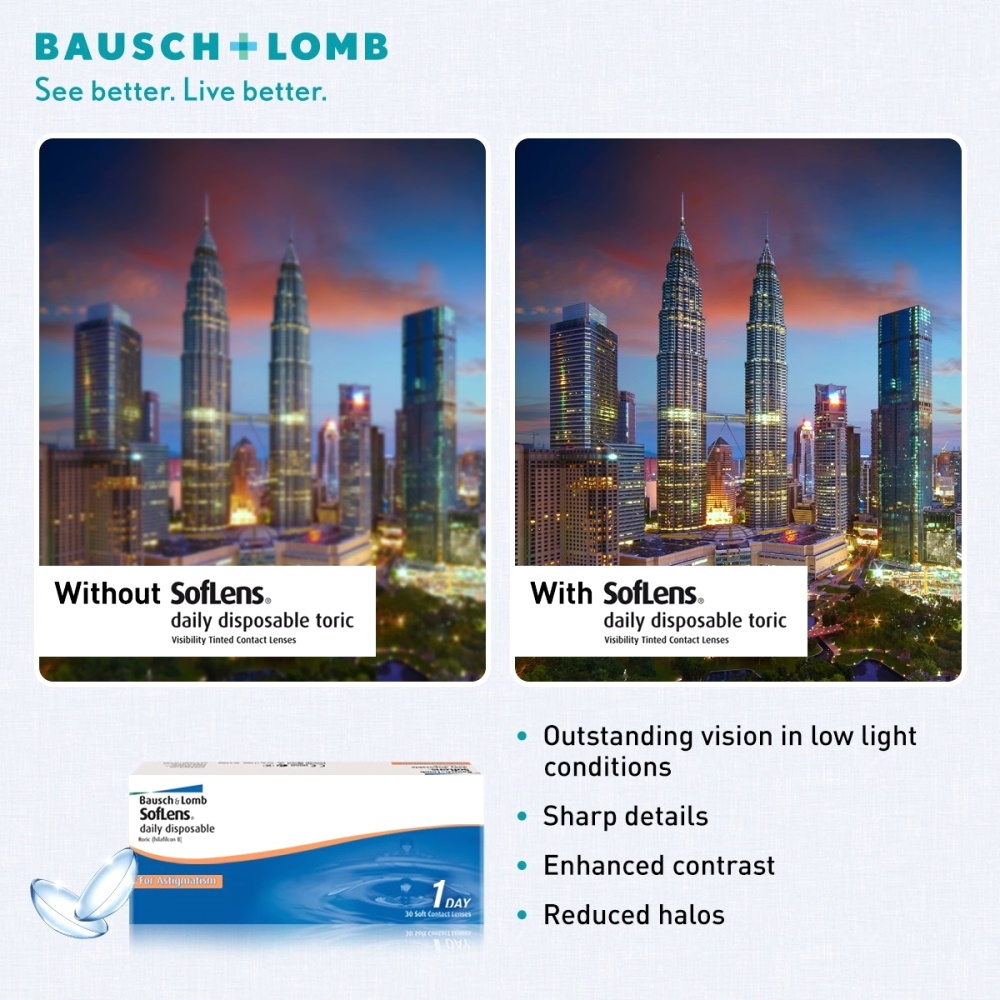 รับส่วนลดสูงสุด 25% Soflens Daily Toric คอนแทคเลนส์รายวัน สายตาเอียง บรรจุ 15 คู่
