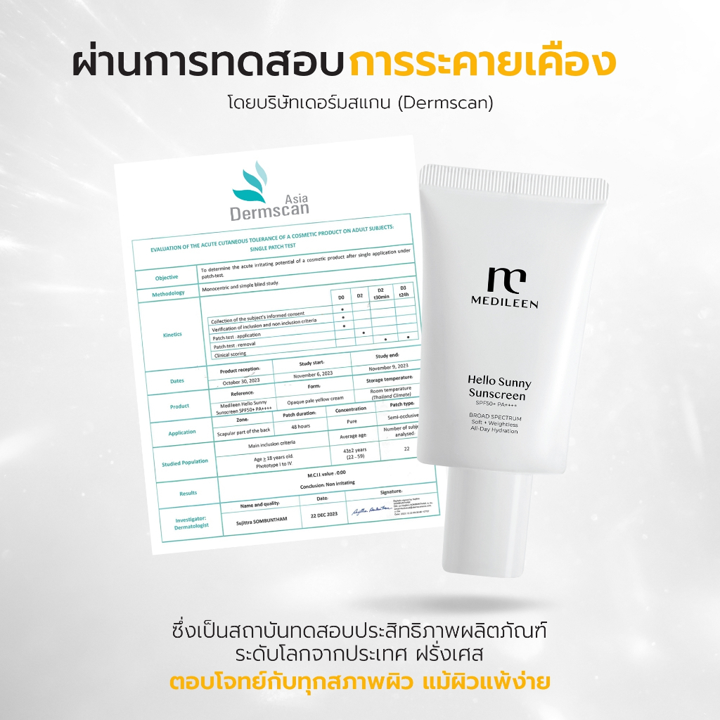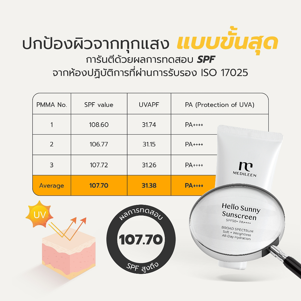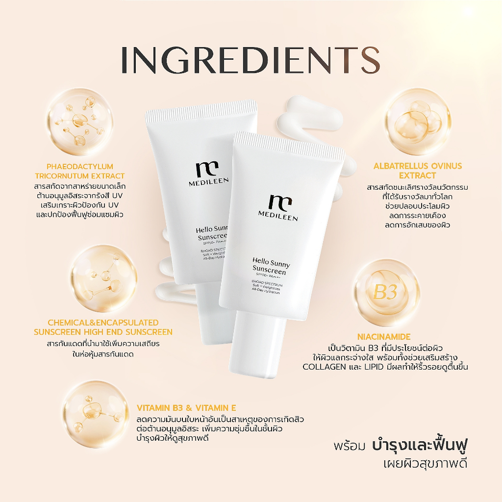 กันแดดรุ่นใหม่ Hello Sunny Sunscreen Medileen SPF PA++++