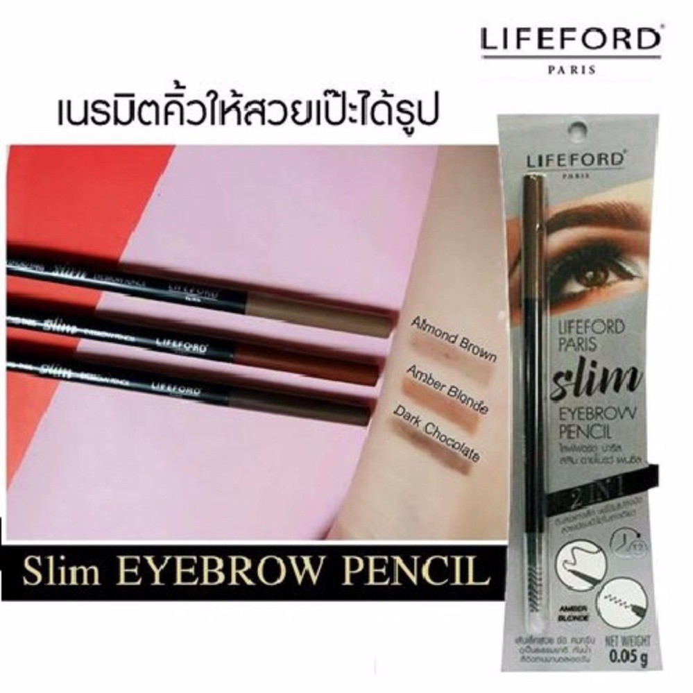ไลฟ์ฟอร์ด ดินสอเขียนคิ้ว หัวเรียวเล็ก Lifeford Slim Eyebrow Pencil หมุนออโต้ สลิม อายโบรว์ เพนซิล มี 3 เฉดสี