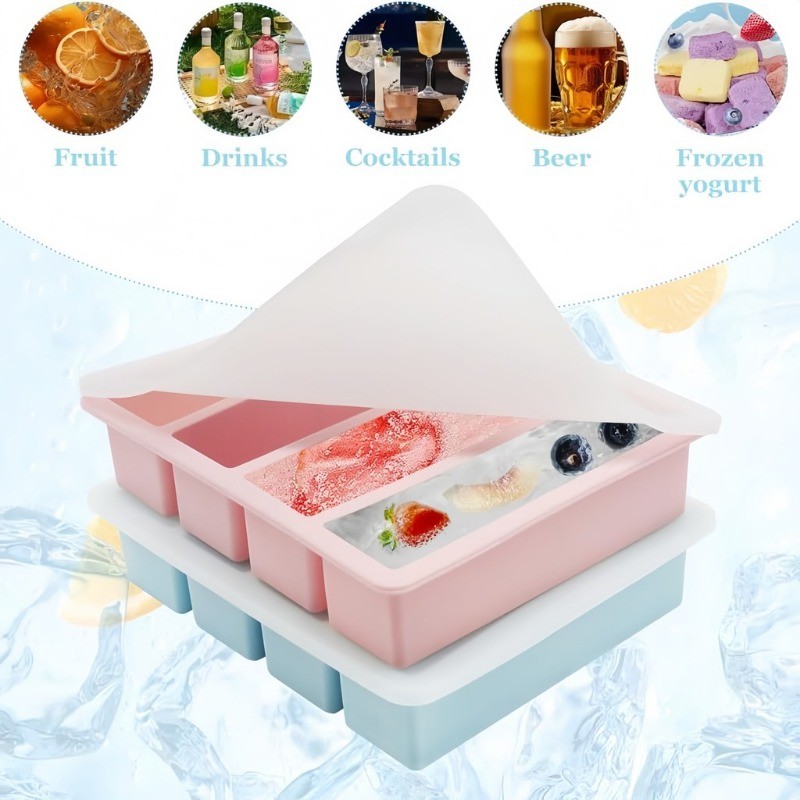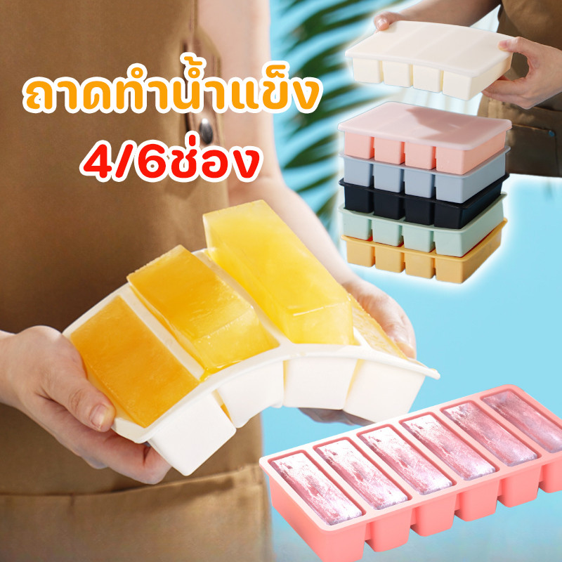 พร้อมส่ง ถาดทำน้ำแข็ง 4/6ช่อง ผลิตจากซิลิโคน พร้อมฝาปิด ไม่เสียรูปง่าย สําหรับทําน้ําแข็ง วิสกี้