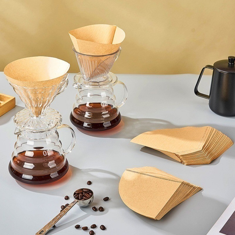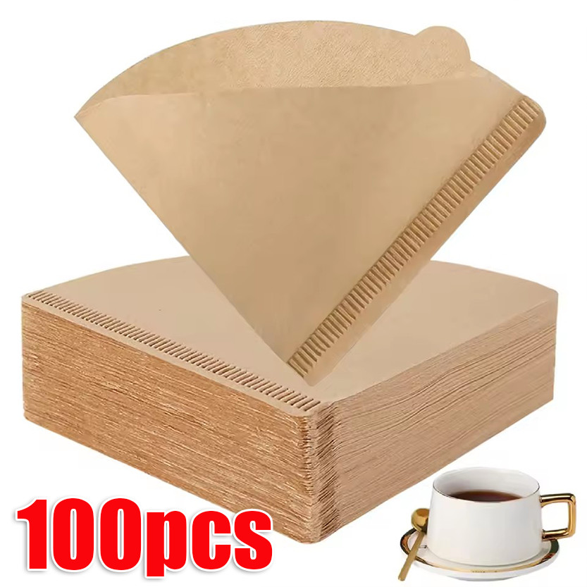 50/100ชิ้น กระดาษกรองกาแฟ / กระดาษกรองทรงกรวยรูปตัววี/กระดาษธรรมชาติแบบใช้แล้วทิ้งกรองกาแฟ