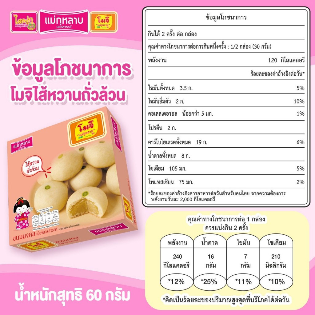 โมจิ แม่กุหลาบ ไส้หวานถั่วล้วน 1 กล่อง / 60 กรัม