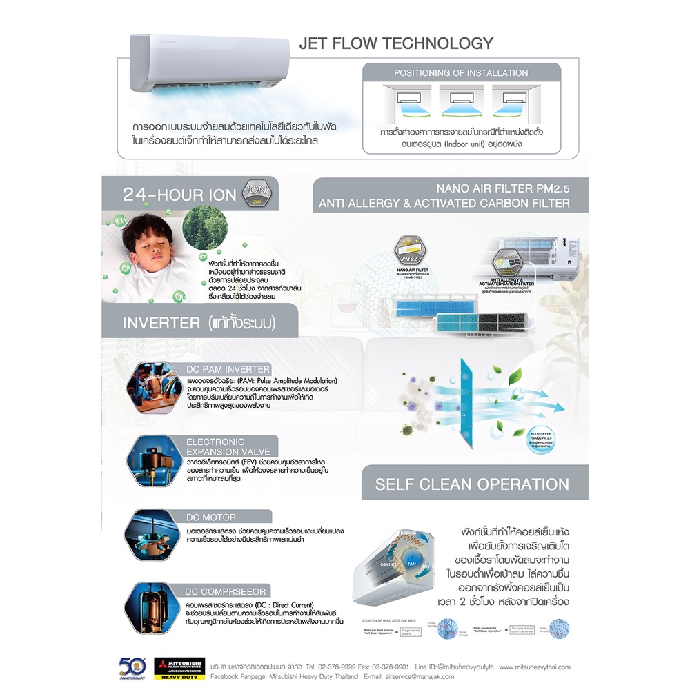 1.ระบบ Jet Flow Technology การออกแบบระบบจ่ายลมด้วยเทคโนโลยีเดียวกับใบพัดในเครื่องยนต์เจ็ททำให้สามารถส่งลมไปได้ระยะไกล โดยเฉพาะห้องที่มีขนาดใหญ่