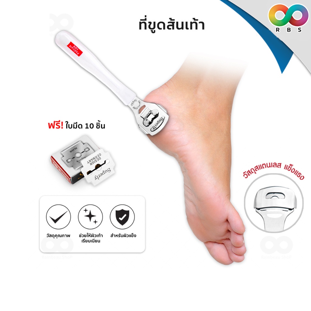 RAINBEAU ที่ขูดส้นเท้า มีดโกนส้นเท้า พร้อมใบมีด 10 ชิ้น Heel scraper ใบมีดขูดส้นเท้า ส้นเท้าแตก