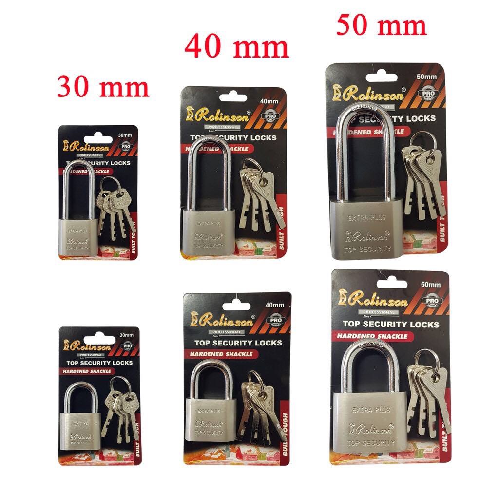 Rolinson แม่กุญแจล็อค พร้อมลูกกุญแจ 4 ดอก สีเงิน 30mm ยาวและสั้น (ขนาดเล็ก)